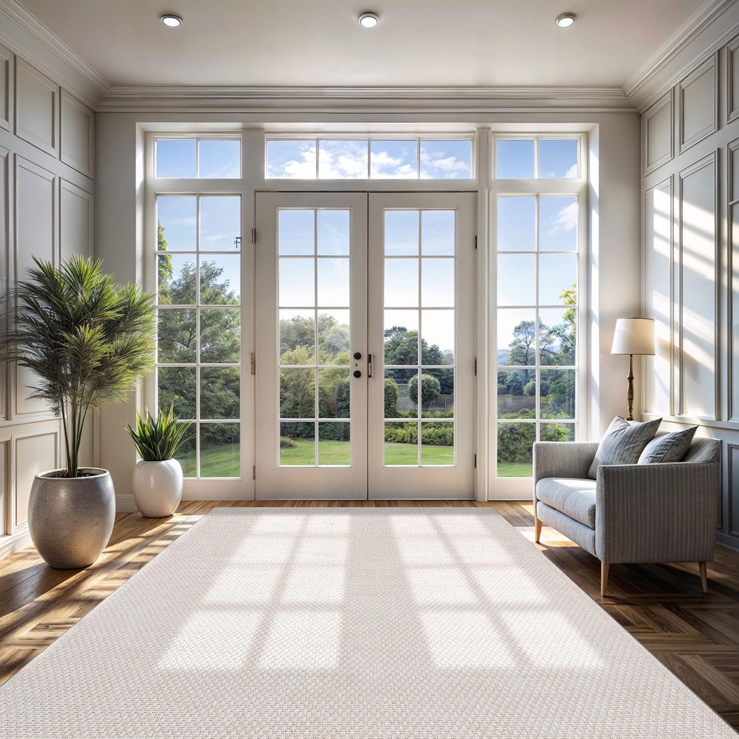 CAMILSON Easy Jute Rug 9x12, Indoor Outdoor Off-White Farmhouse Area Rugs for Living Room Patio and Kitchen Rug, Solid Woven Design, Easy-Cleaning, Washable Outside Carpet Alfombras (9 x 12)