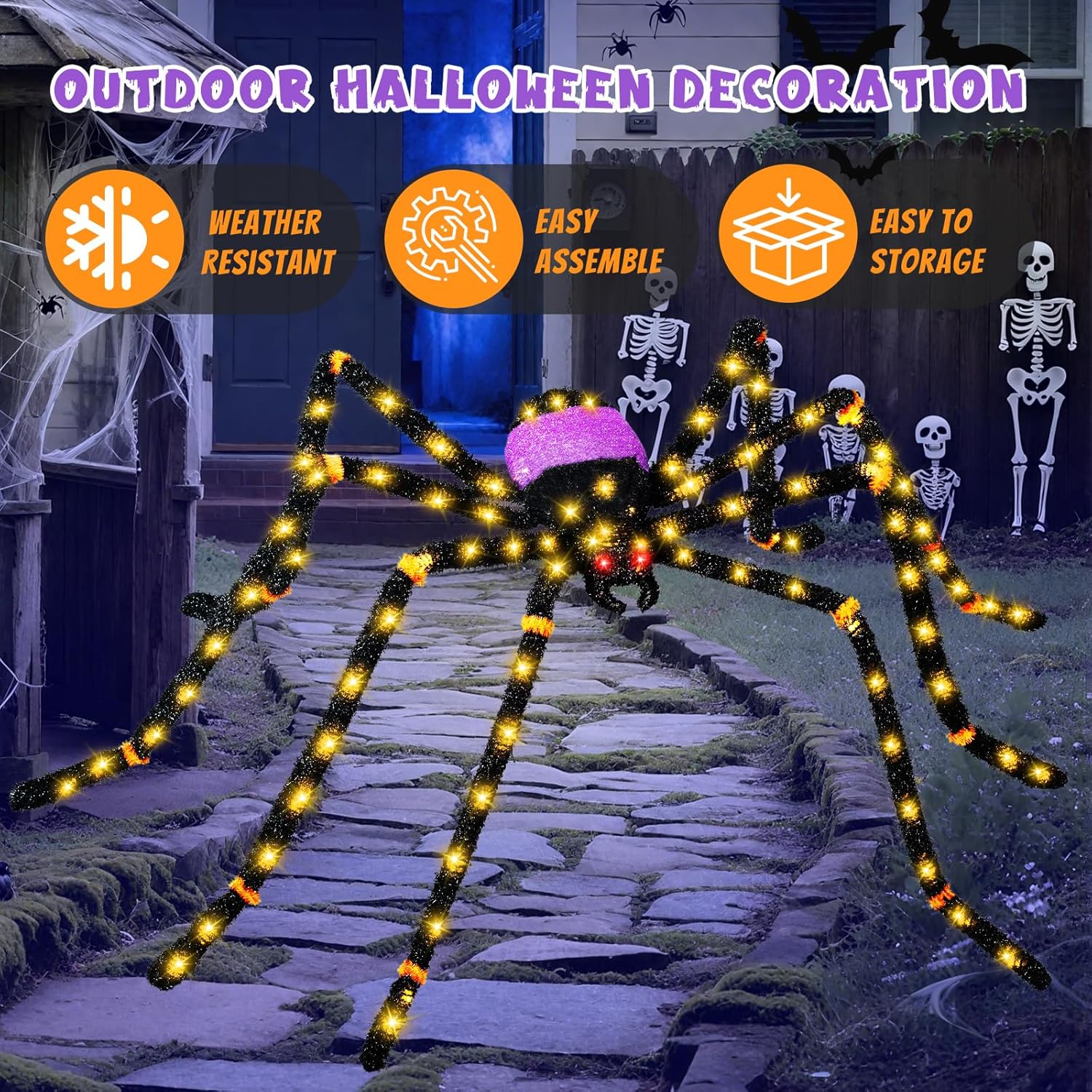- 💡 Pre-Lit Light Up Spider: This creepy Halloween decorations with brighter 100 LED cast haunting glows across freely pose bendable glow legs and scary glowing red eyes, creating bone-chilling spooky decor that transforms any space into a haunted zone after dark.