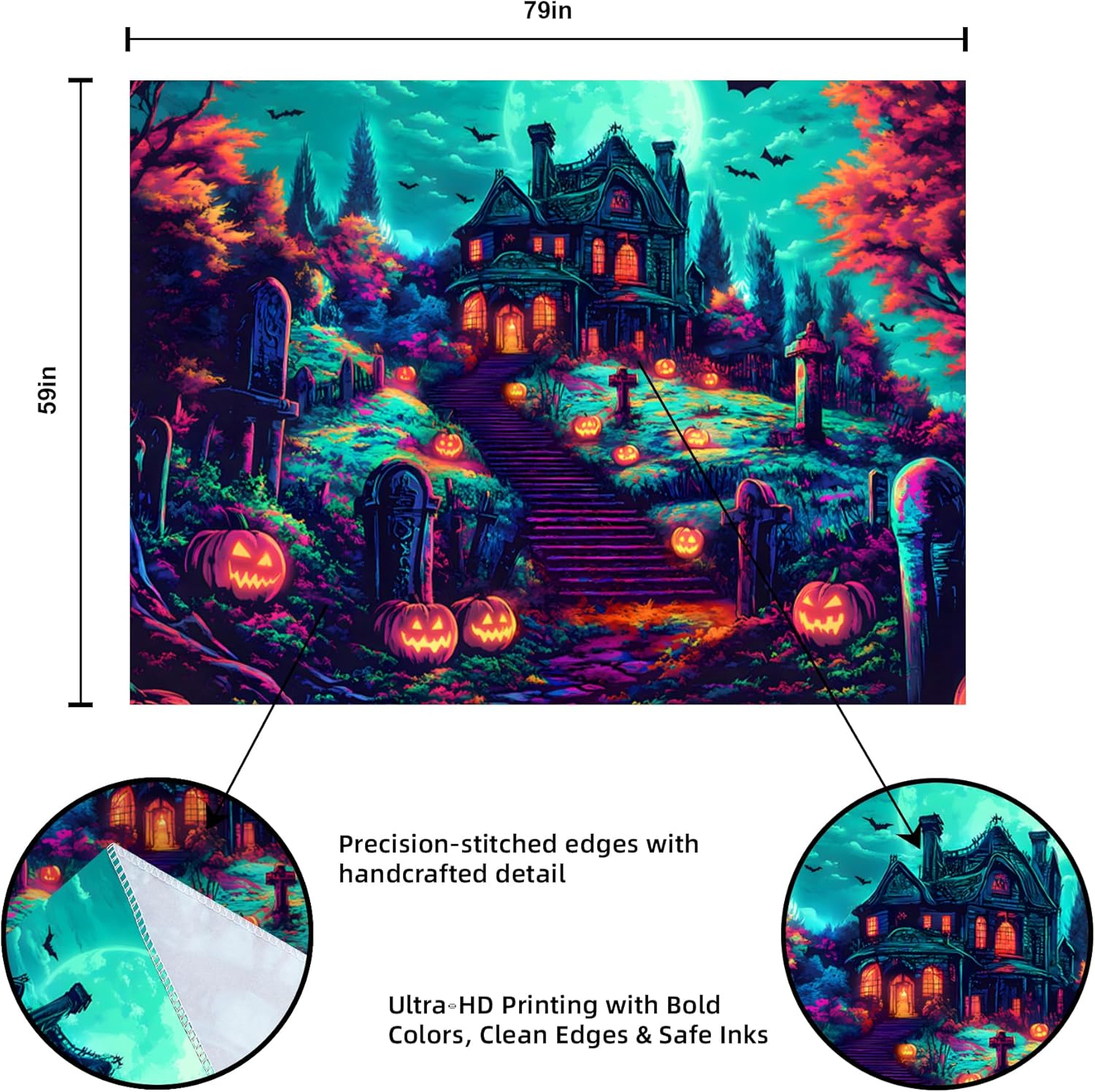 Halloween Tapestry, Blacklight Tapestry for Halloween Party Decor Hanging Tapestries Backdrop Wall Art Poster for Bedroom Dorm 79x59in