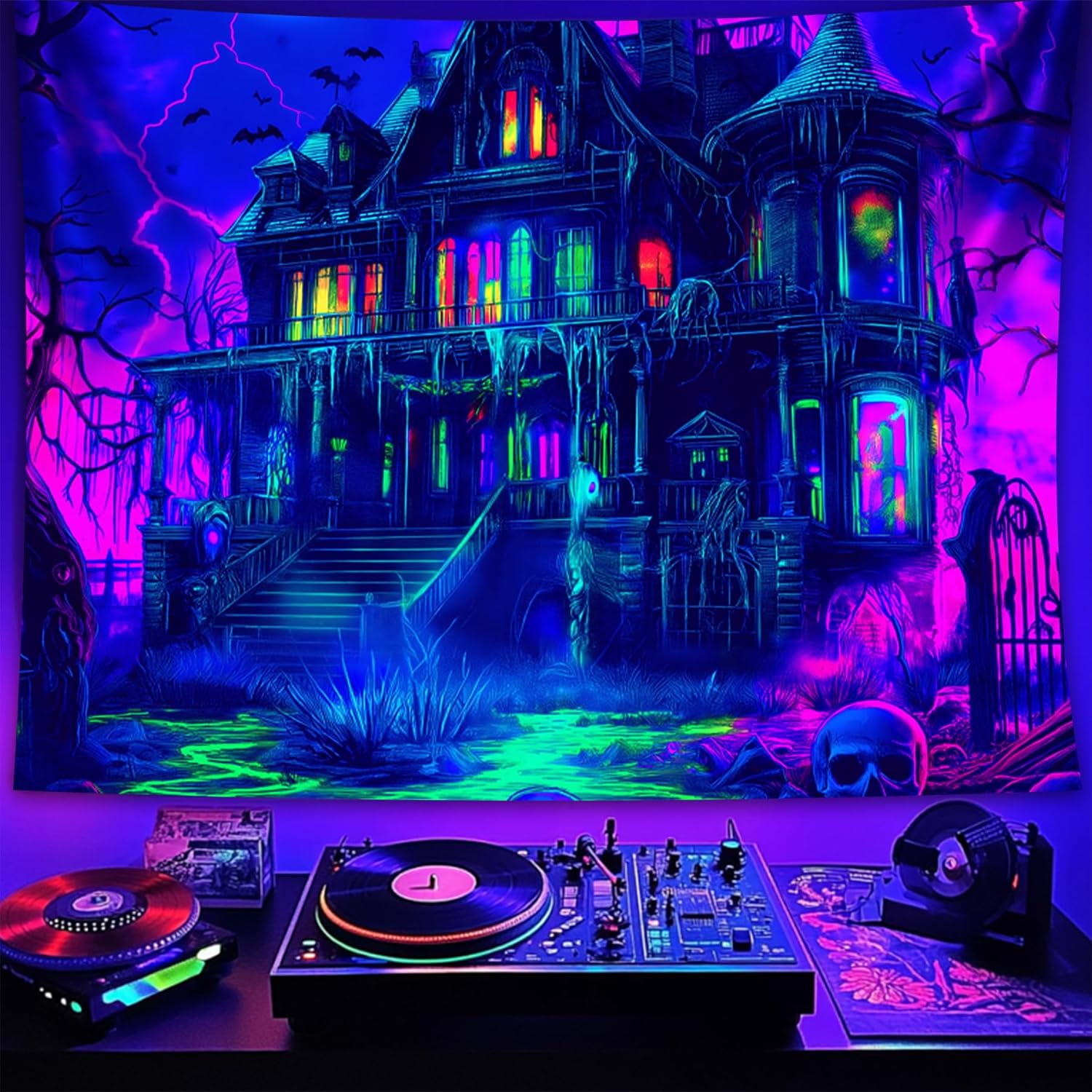 • 【Halloween Tapestry】Turn your room into a haunted haven with this Blacklight Tapestry Halloween—ideal for parties, entryways, and walls.