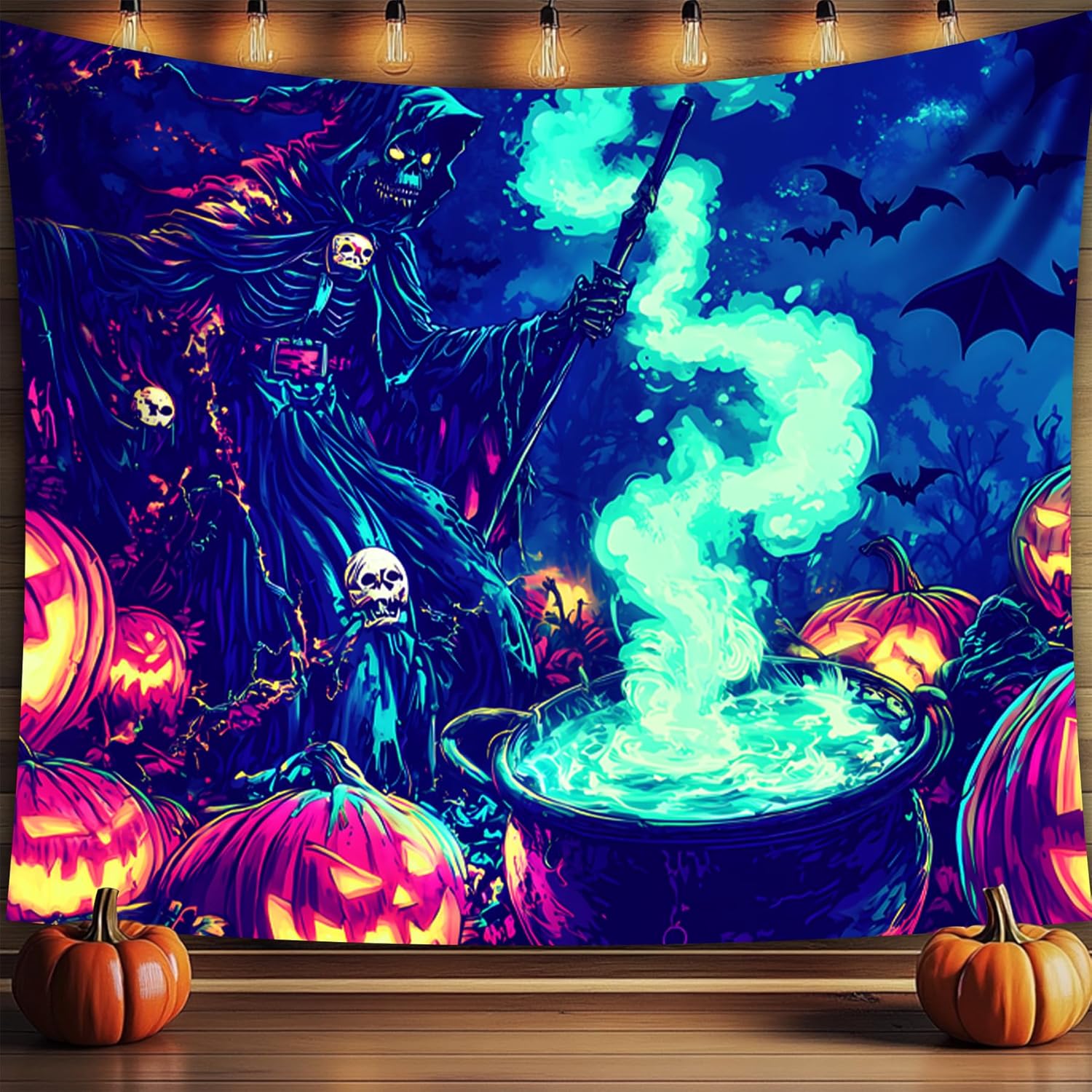 - 【Halloween Tapestry】Turn your room into a haunted haven with this Blacklight Tapestry Halloween—ideal for parties, entryways, and walls.