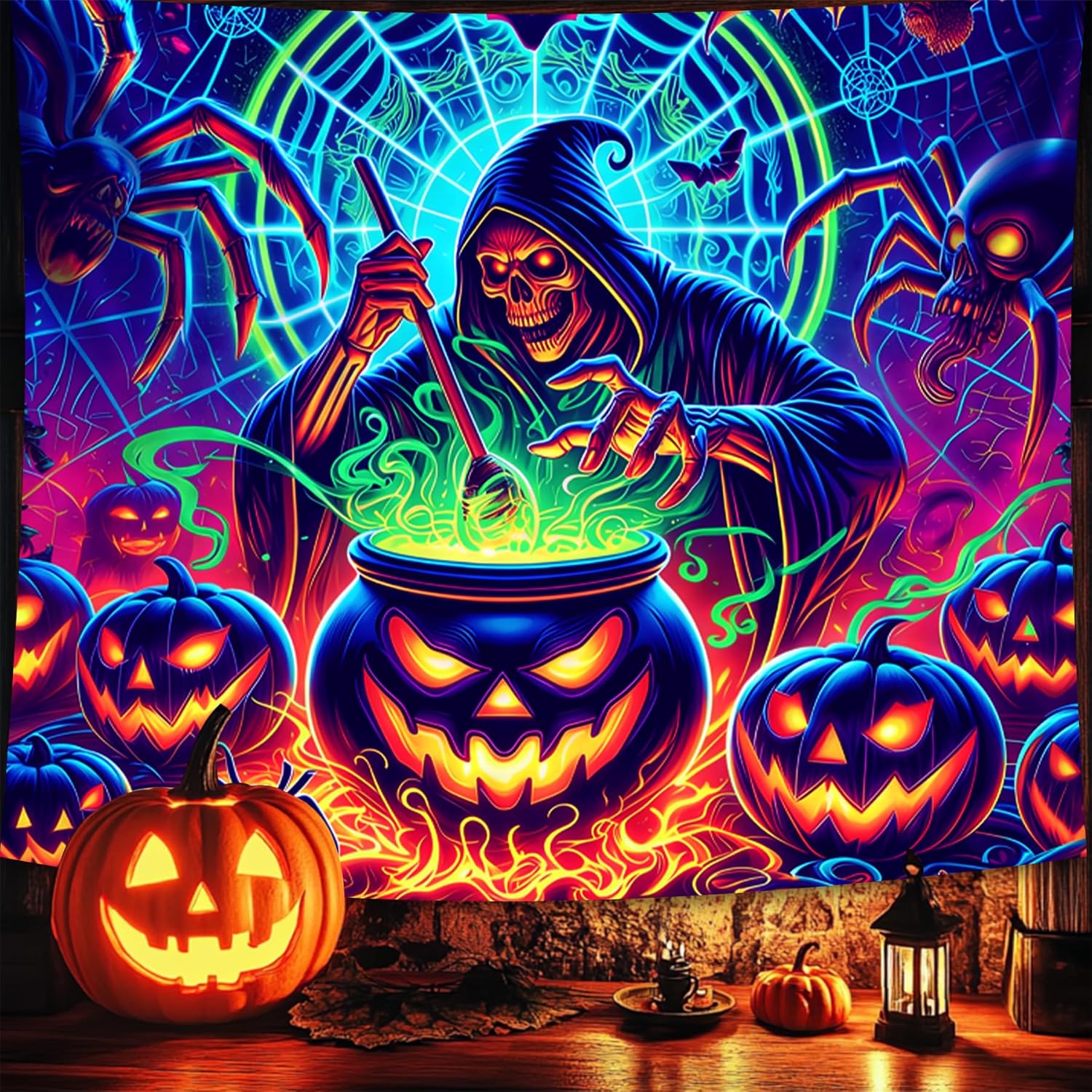 • 【Blacklight Tapestry】Designed for blacklight events, the intricate Halloween art on this blacklight tapestry pops with color in the dark.
