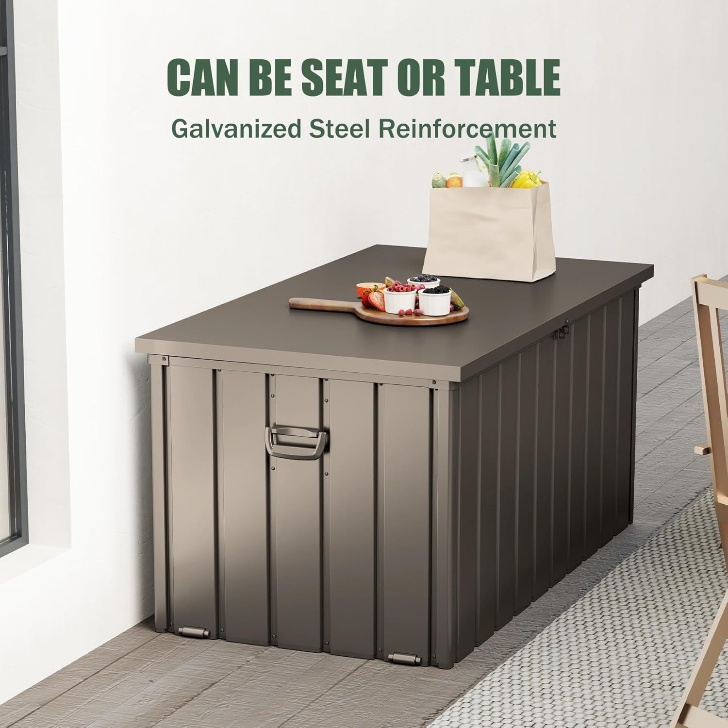 Domi Deck Box 160 Gallon, Waterproof Lockable Steel Outdoor Storage Container for Outside Cushions, Garden Tools and Pools Equipment, Brown