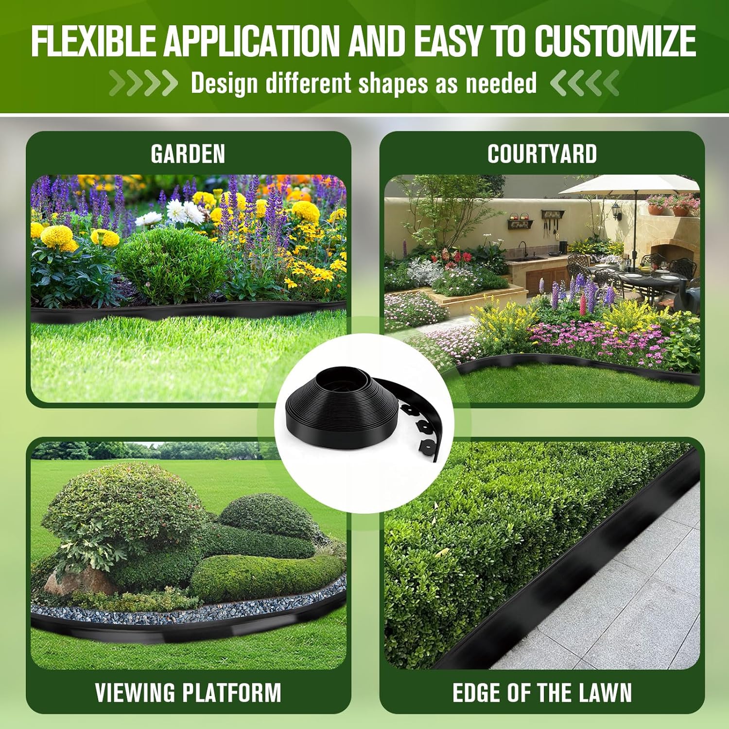 - High-Quality Garden Edging: This garden edging for landscaping is made of polyethylene (PE) is very strong and flexible, not prone to aging, reusable, longer service life, strong weather resistance make makes it an ideal for garden border edging, yard edging borders, flower bed edging, lawn border edging and flower bed edging borders
