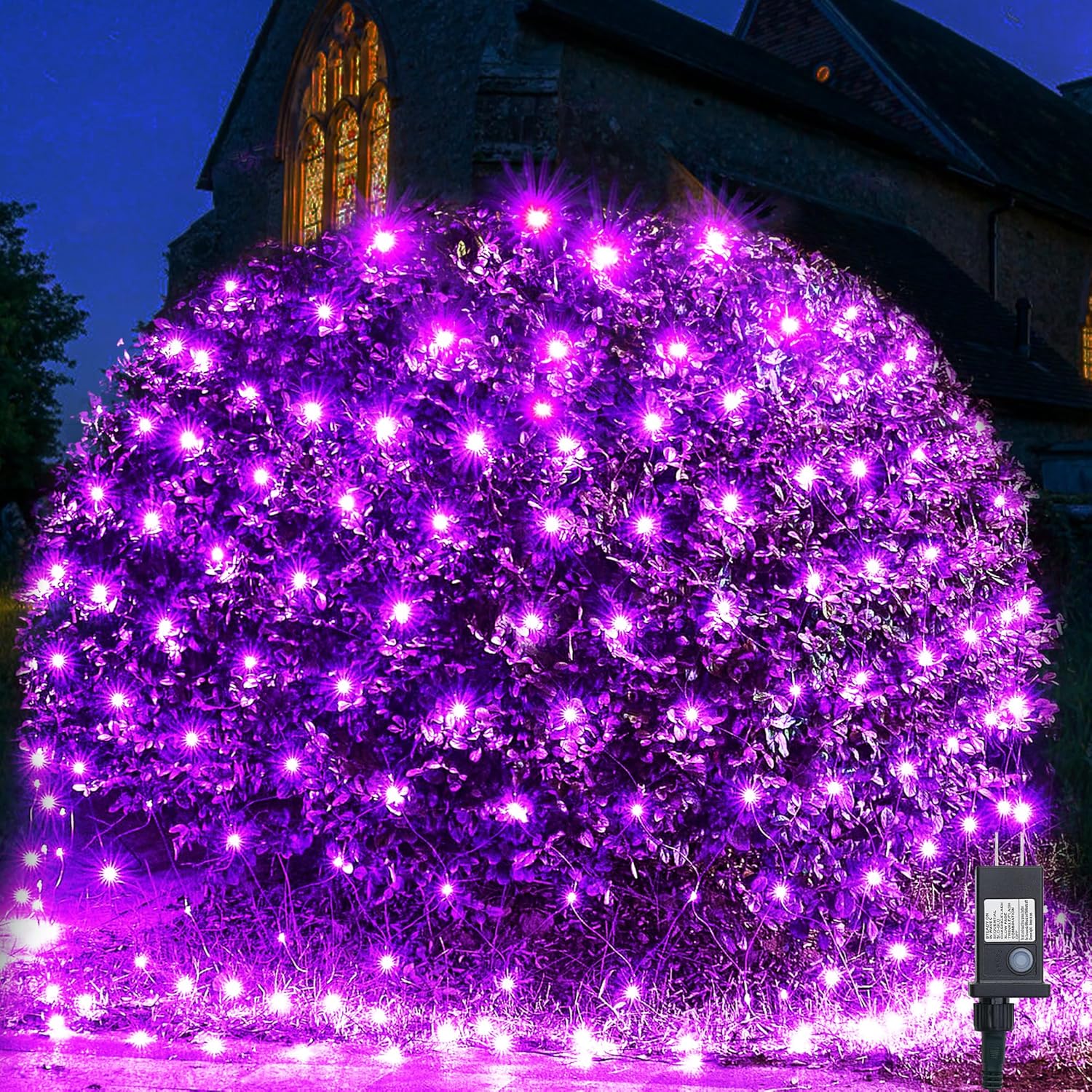 - Waterproof Outdoor Halloween Bush Lights: WBao Halloween purple net lights are IP44 waterproof and can be used outdoors in any weather condition. But the adapter is not waterproof, if used outdoors, when used outdoors, it is necessary to ensure that the plug power supply is not exposed to rain.