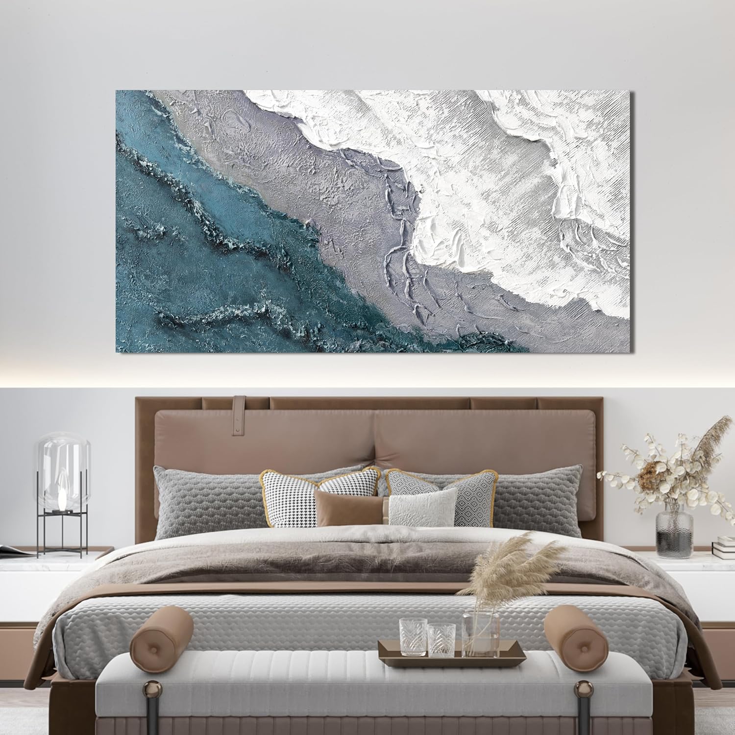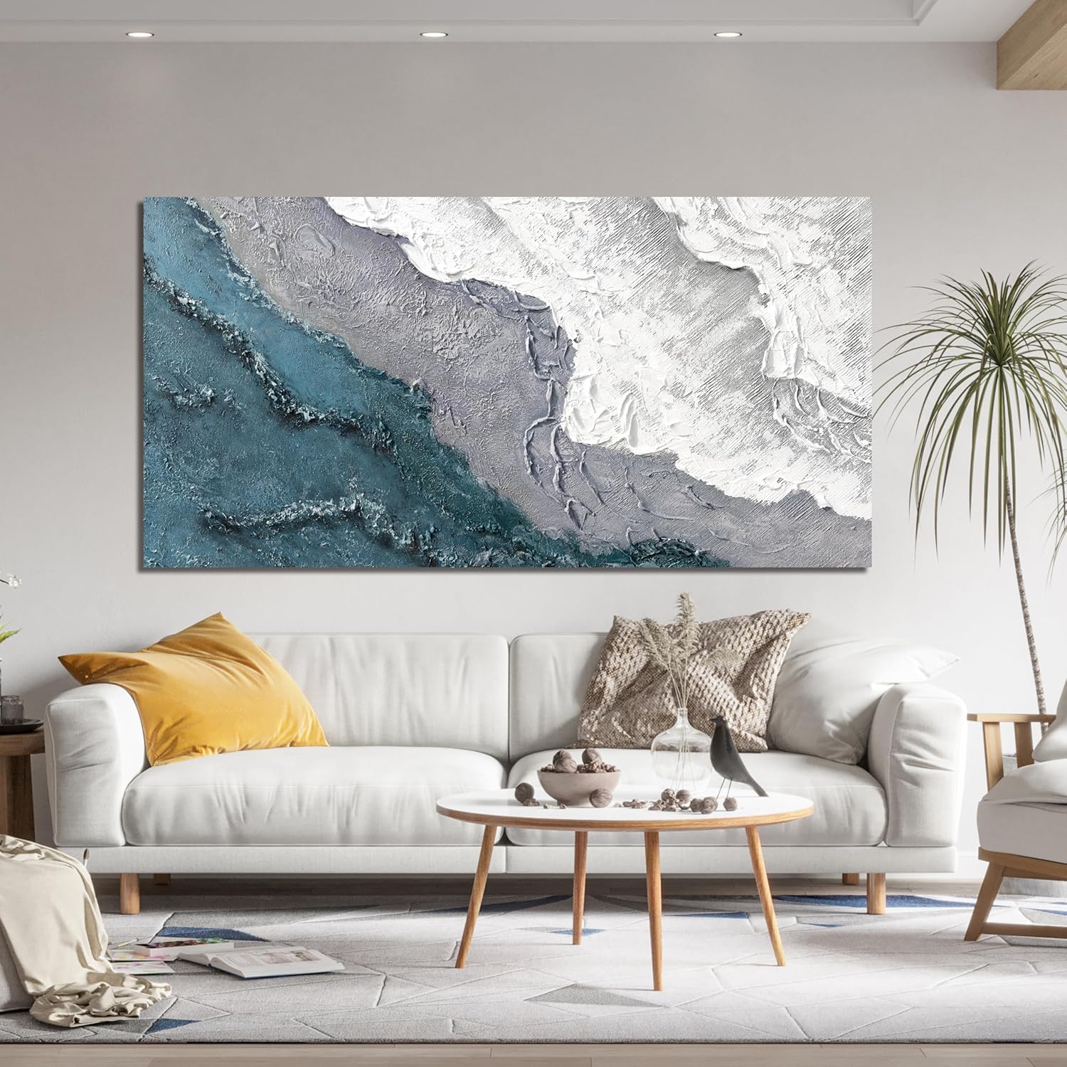 Abstract Wall Art Decor Large Modern Blue White Wall Art Prints Abstract Canvas Art Wall Decor Wave Artwork for Walls Coastal Minimalist Wall Art Decorations Bedroom Office Wall Art Decor 24" X 48"