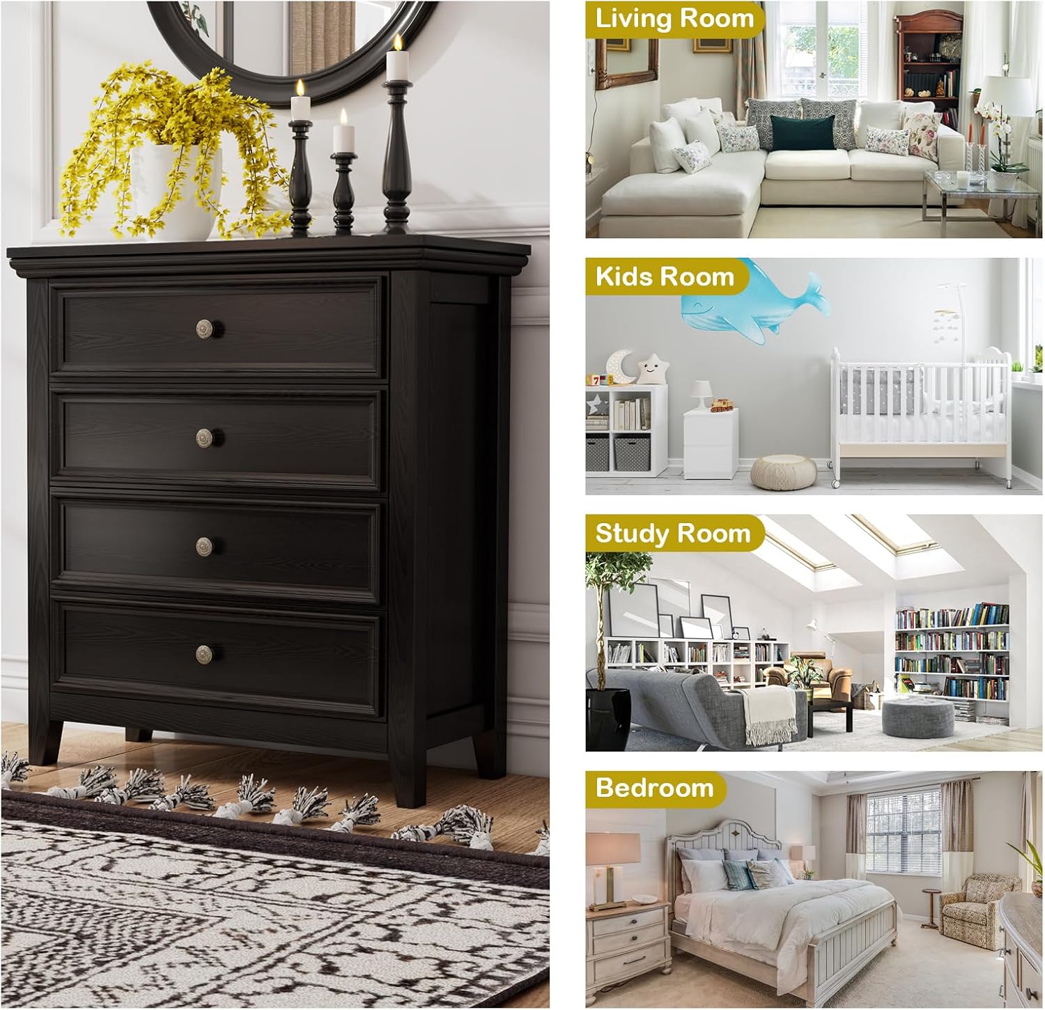 - 【Multipurpose Usage】 The modern 4 drawer dresser can sit in any corner of you home to show your taste while bringing great function - in bedroom or closet to put clothes and overflow, in entryway to store keys and daily items.It is ideal for small spaces such as apartments and dorm rooms.