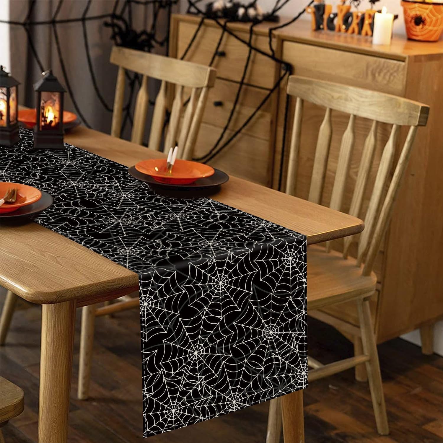 Halloween Table Runner Spider Web Black Linen Table Runners for Seasonal Holidays Indoor Outdoor Kitchen Dining Party Home Decor 13 x 120 Inch