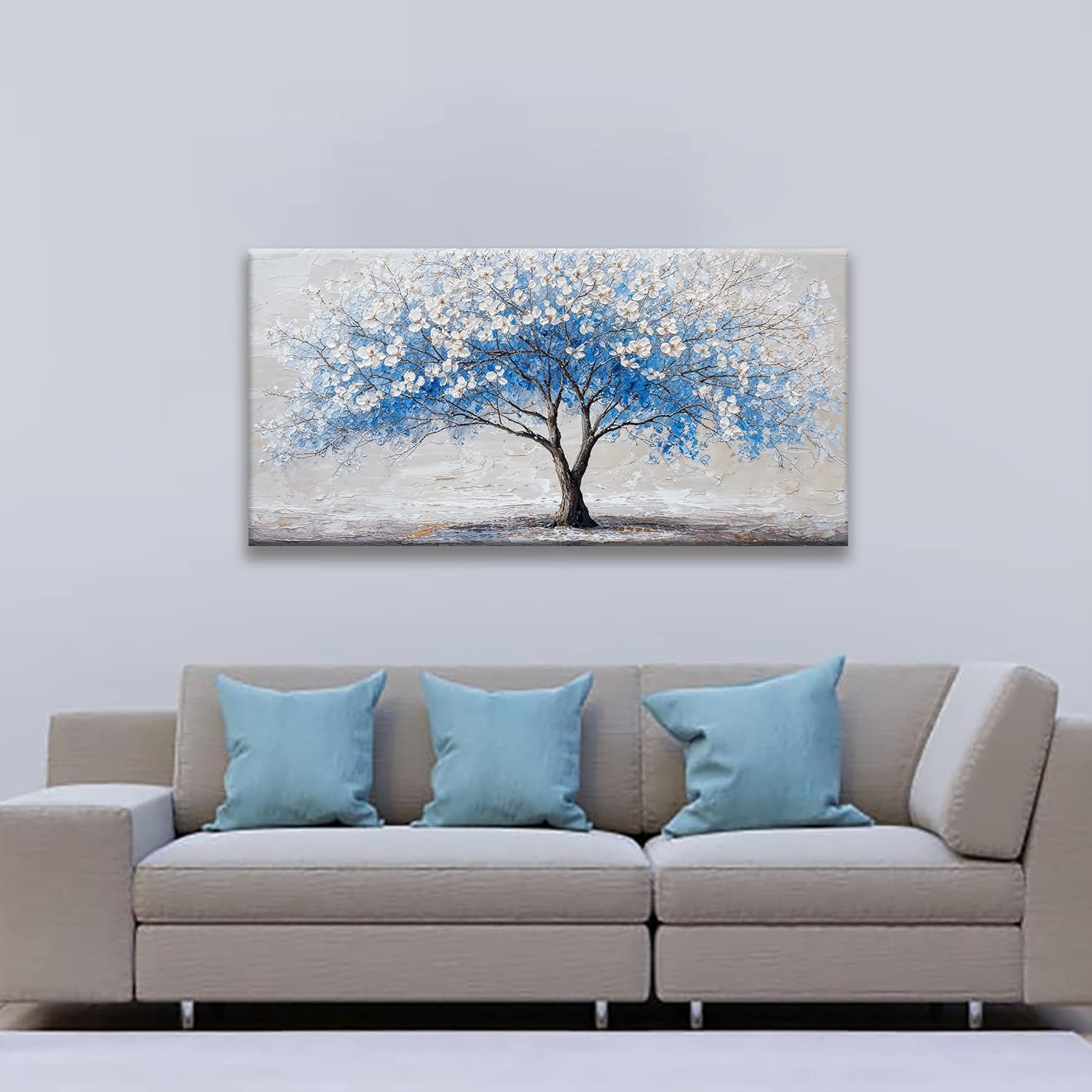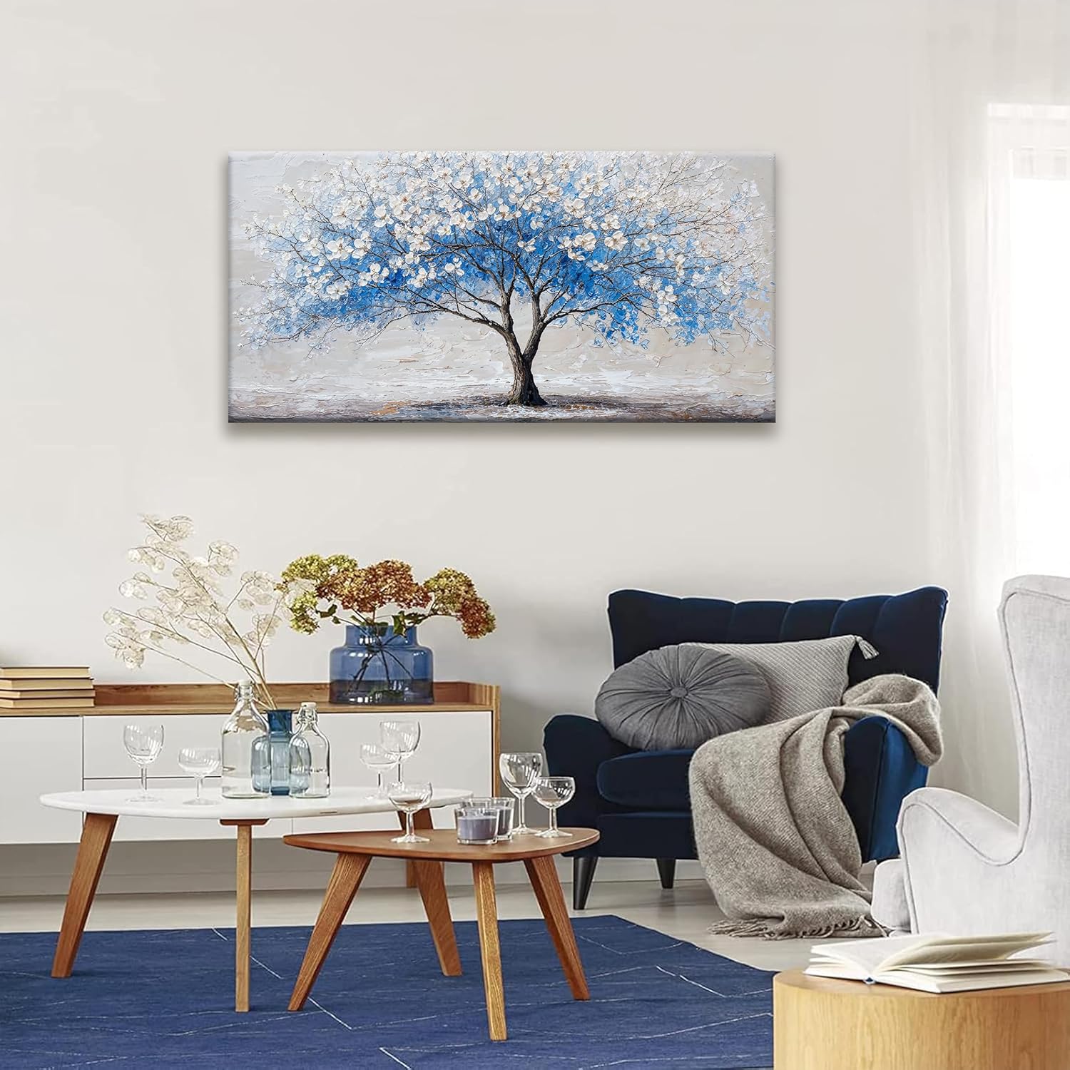 Suconvng Wall Art Blue Tree Of Life Modern Wall Artwork Canvas Art Wall Decor Pictures Painting Blue Tree Abstract Wall Decor For Living Room Bedroom Dining Room Home Office Artwork 24"×48"