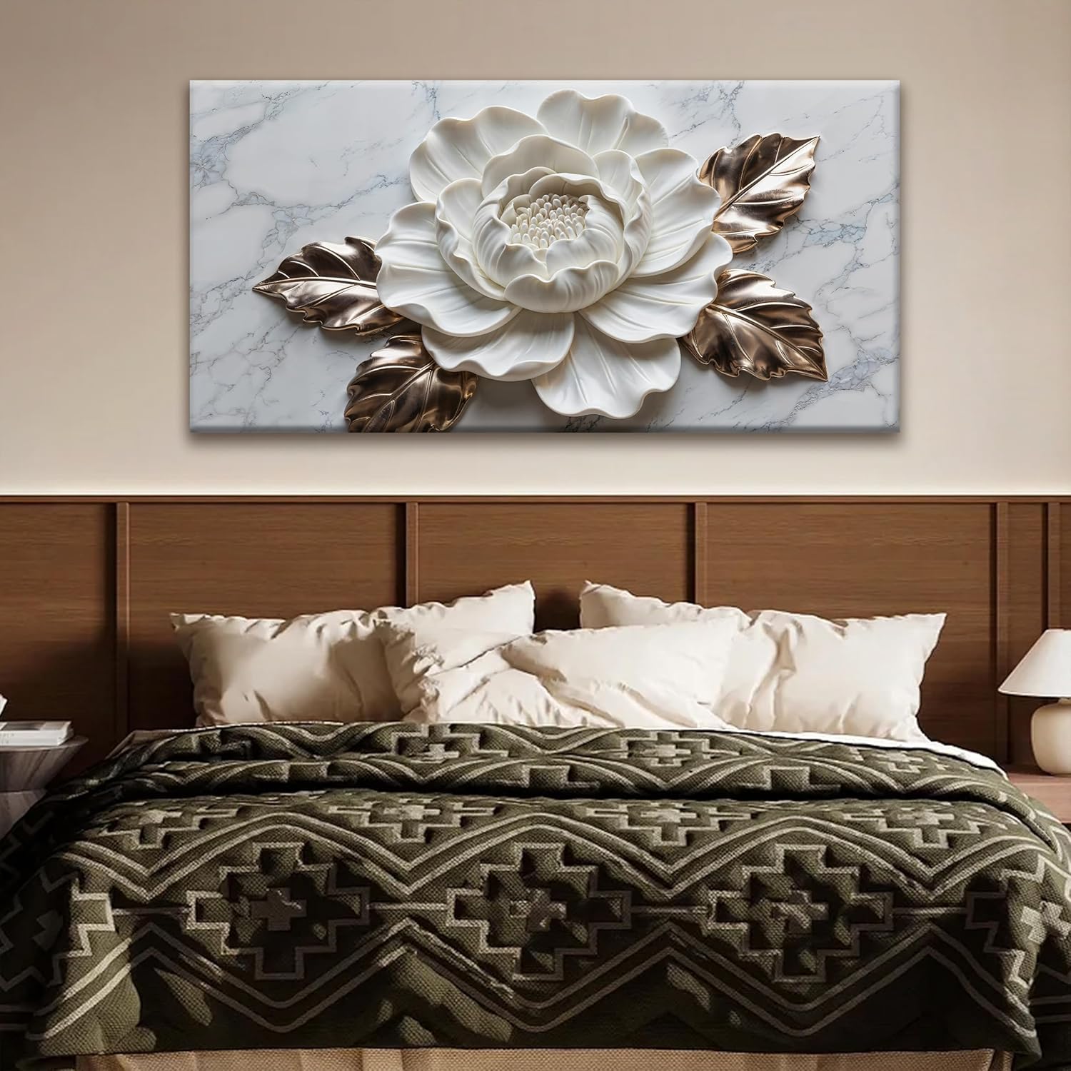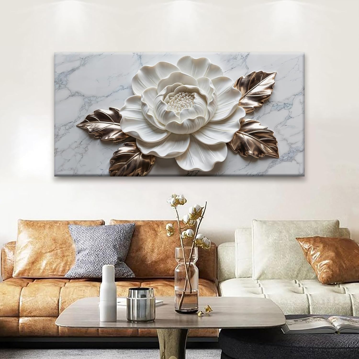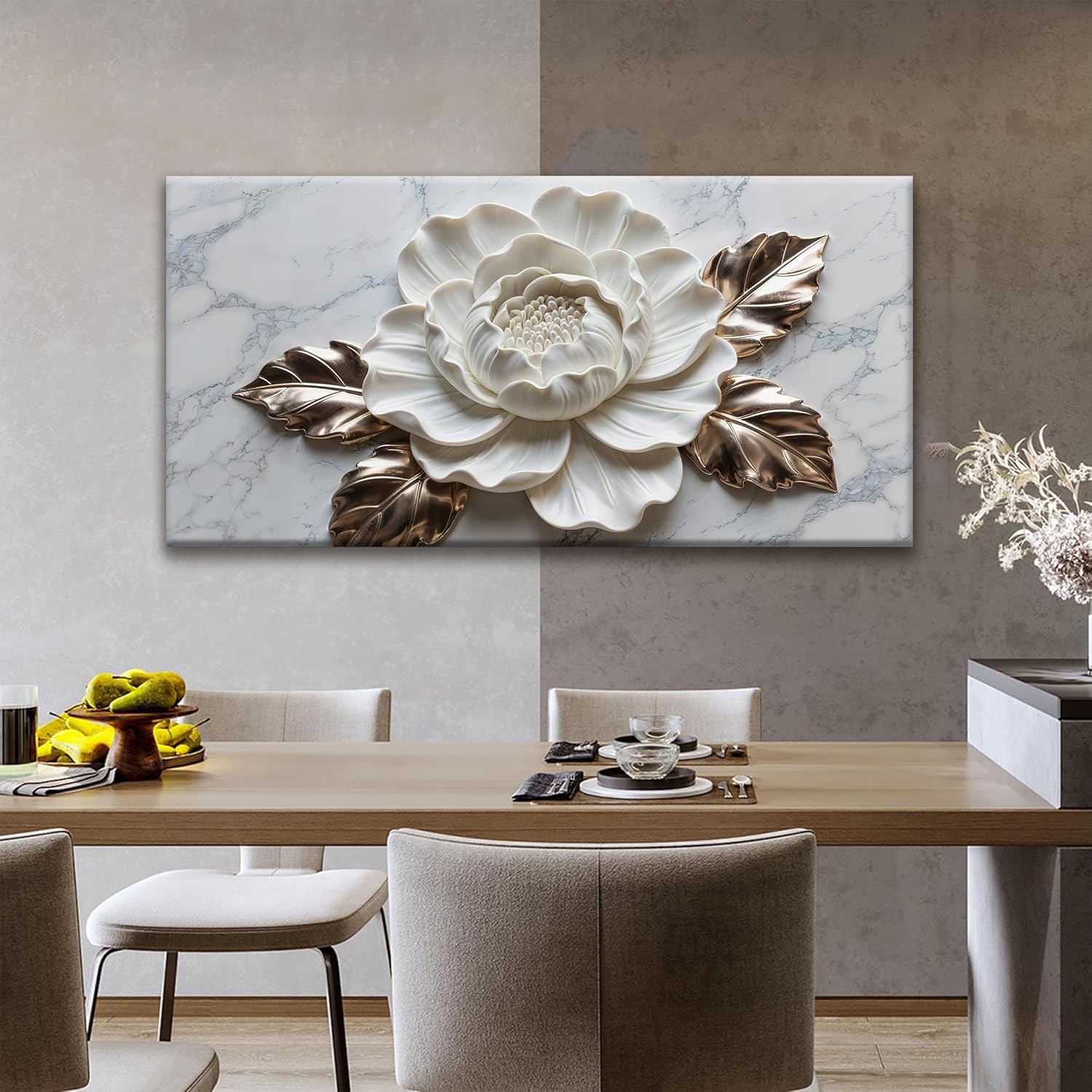 Wall Art Living Room Marble Texture Wall Art Modern White Flower Canvas Art Wall Decor Home Wall Decor Suitable Pictures For Bedroom Apartment Office Can Be Hung 24" × 48"
