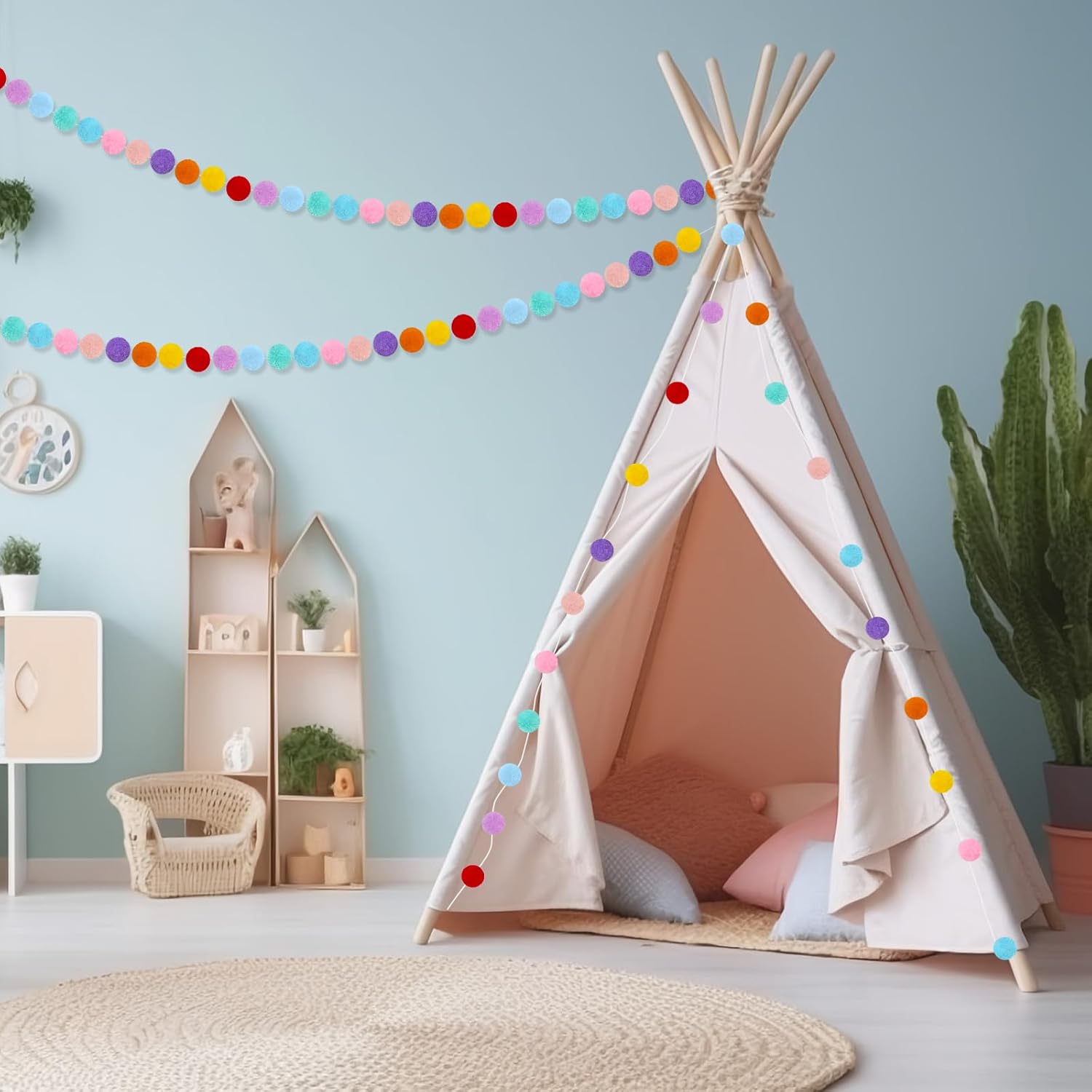 - 4 Sets: You will receive 4 packs of colored felt ball strings, each with a size of 1 inch and 30 balls/6.5 feet per string, totaling 26.5 feet. The quantity is enough for you to decorate your home as you please