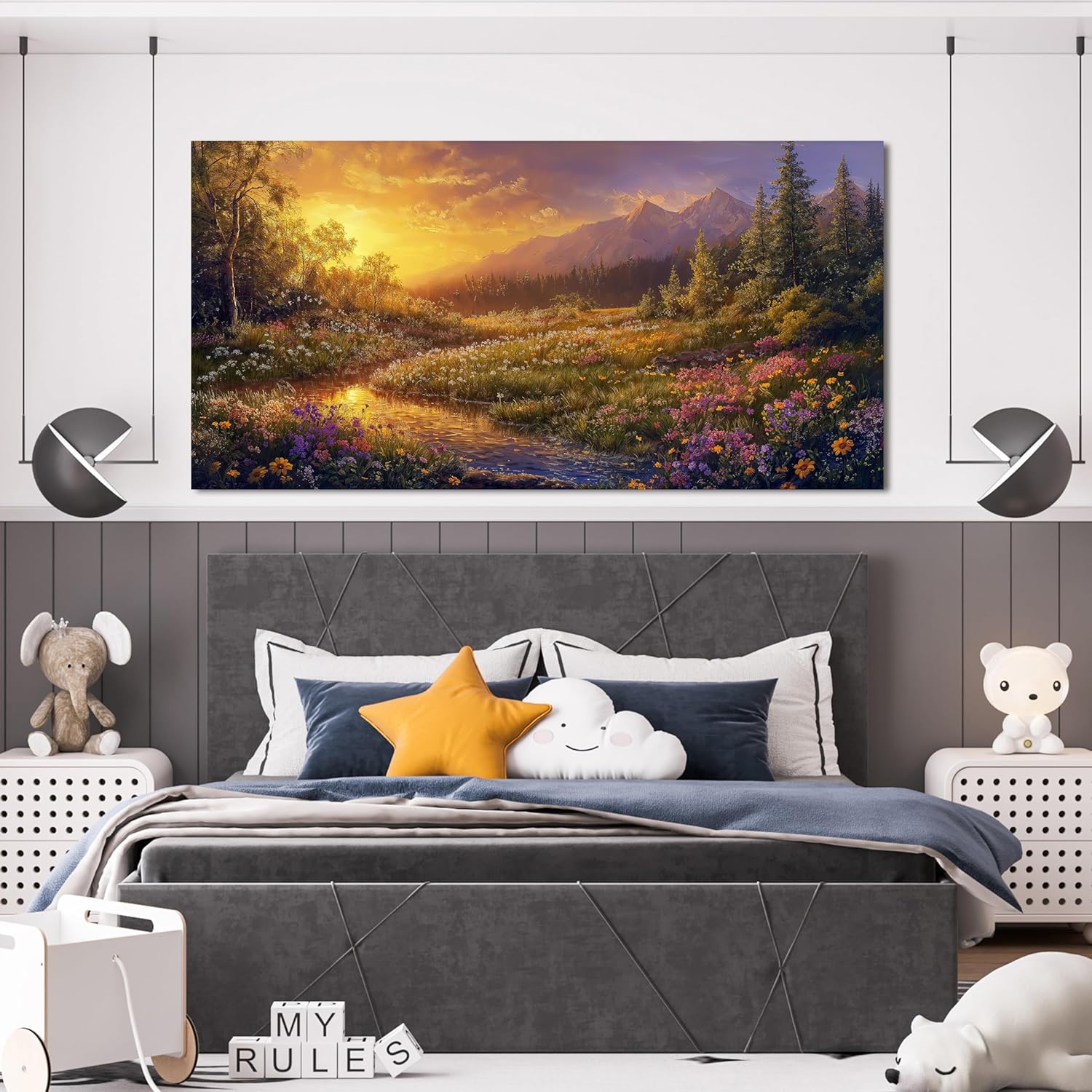 Canvas Wall Art Decor Wall Art Pictures for Living Room Artwork for Walls Large Vintage Landscape Art Prints Canvas Art Wall Decor Countryside River Wall Art Bedroom Home Aesthetic Wall Decor 24"X48"