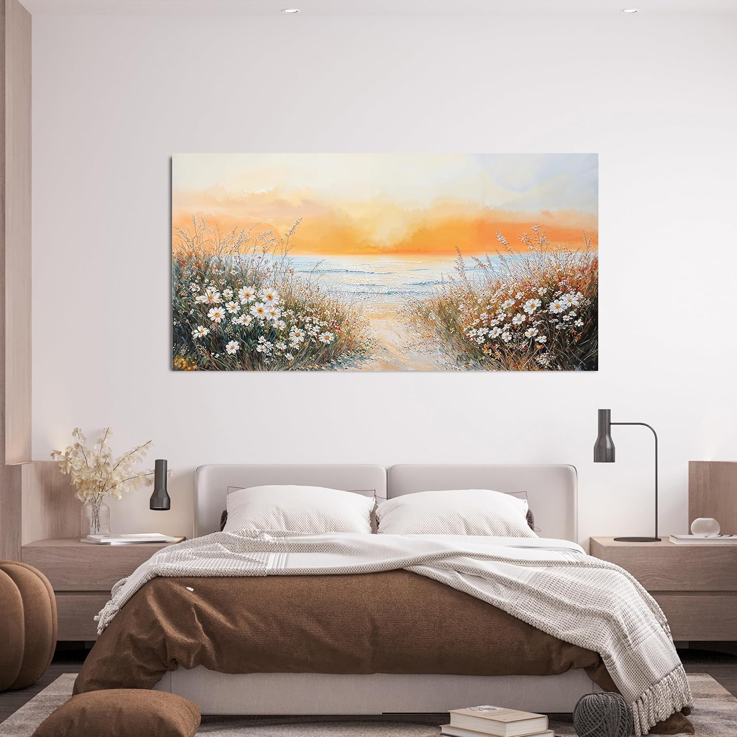 Canvas Wall Art Decor Wall Pictures for Living Room Artwork for Walls Large Coastal Beach Wall Art Prints Canvas Art Wall Decor Vintage Landscape Wall Art Decorations Bedroom Home Wall Art Decor 24" X 48"