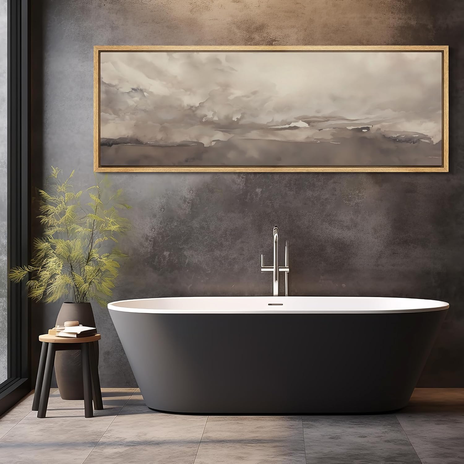 MUDECOR Large Framed Canvas Print Wall Art Misty Landscape Neutral Tranquil Abstract Nature Painting in Earth Tones Illustrations Decorative Colorful Multicolor for Bedroom - 60"x20"