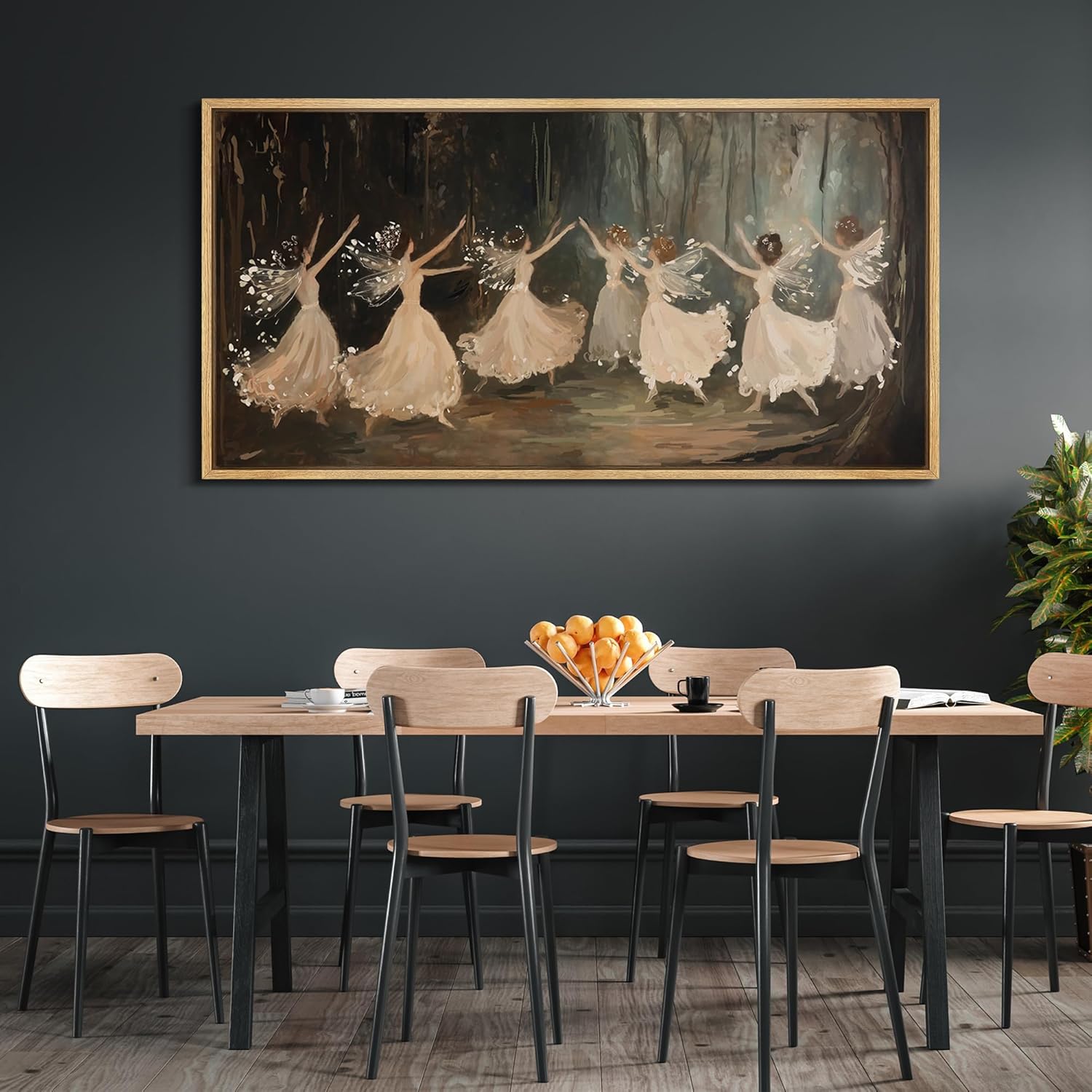 MUDECOR Extra Large Framed Canvas Print Wall Art Ballet Dancers in Motion Romantic Impressionist Dance Scene Illustrations Decorative Colorful Multicolor for Bedroom - 60"x30"