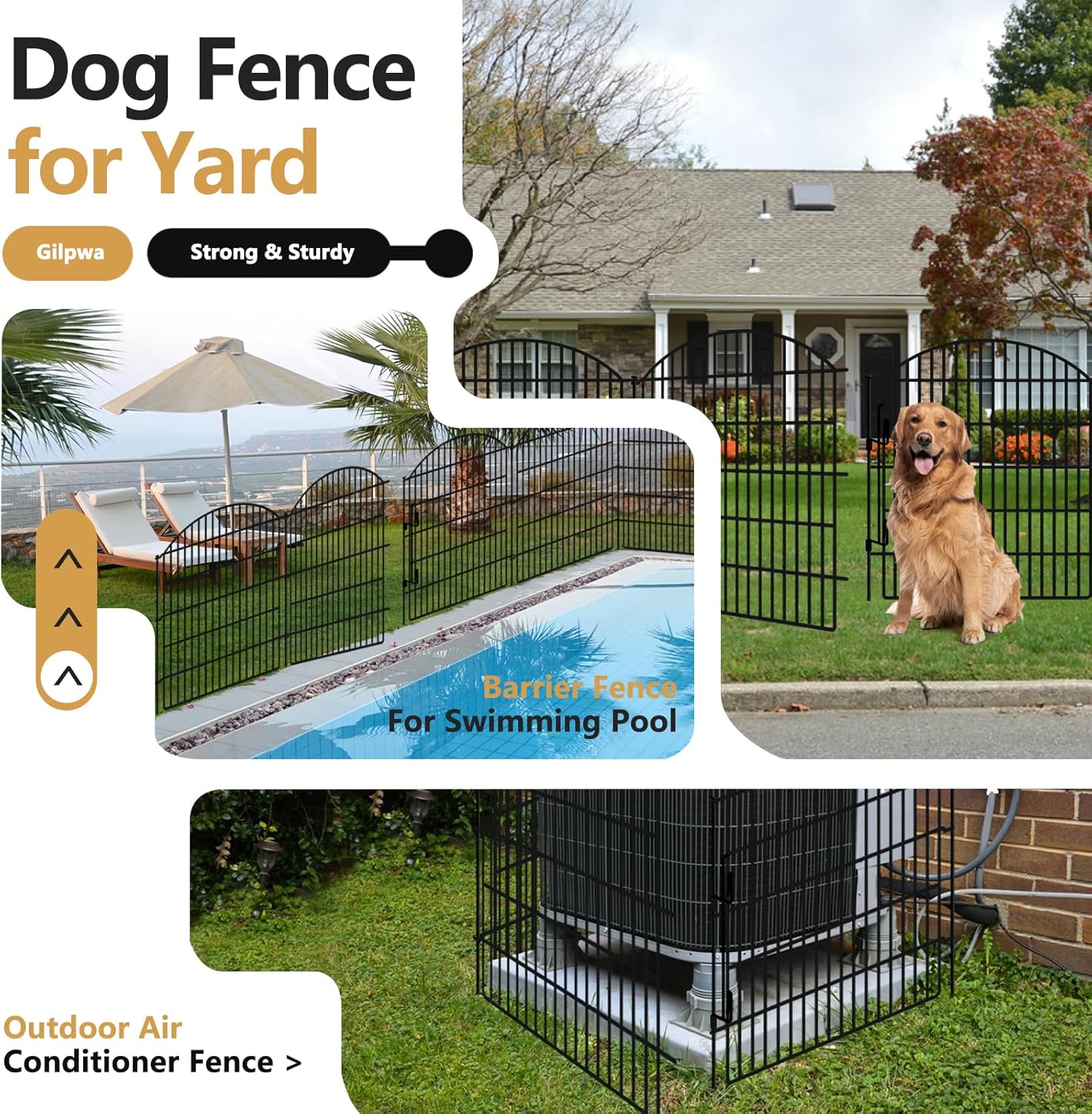 - MORE AVAILABLE SIZE: The classic arch shape design garden fence single piece measures 29" wide, 33" high, 1.4" gap. Comes with 17 metal stakes are 44" in height, which can be inserted into about 12.6 inches above the ground, making it strong enough to prevent animals from entering & leaving, dog digging, and even keep rabbits away from your plants. A total of 16 fence panels with a lock, connecting 17 fence stakes, the total length of the garden fence is approximately 38.67 ft.