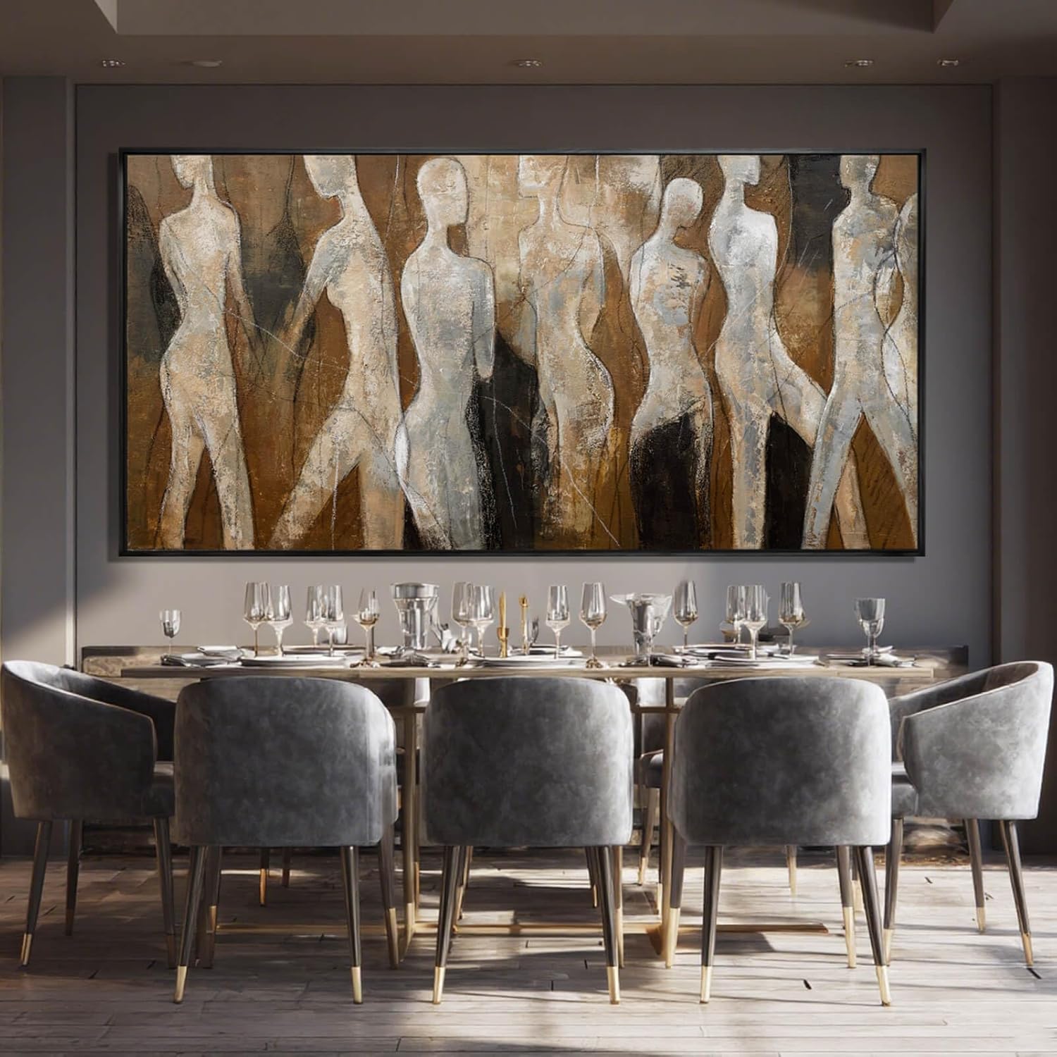 Black Line Wall Decor Brown Canvas Wall Art Figure Wall Decorations 29"x58" Large Pictures for Living Room Artwork for Office