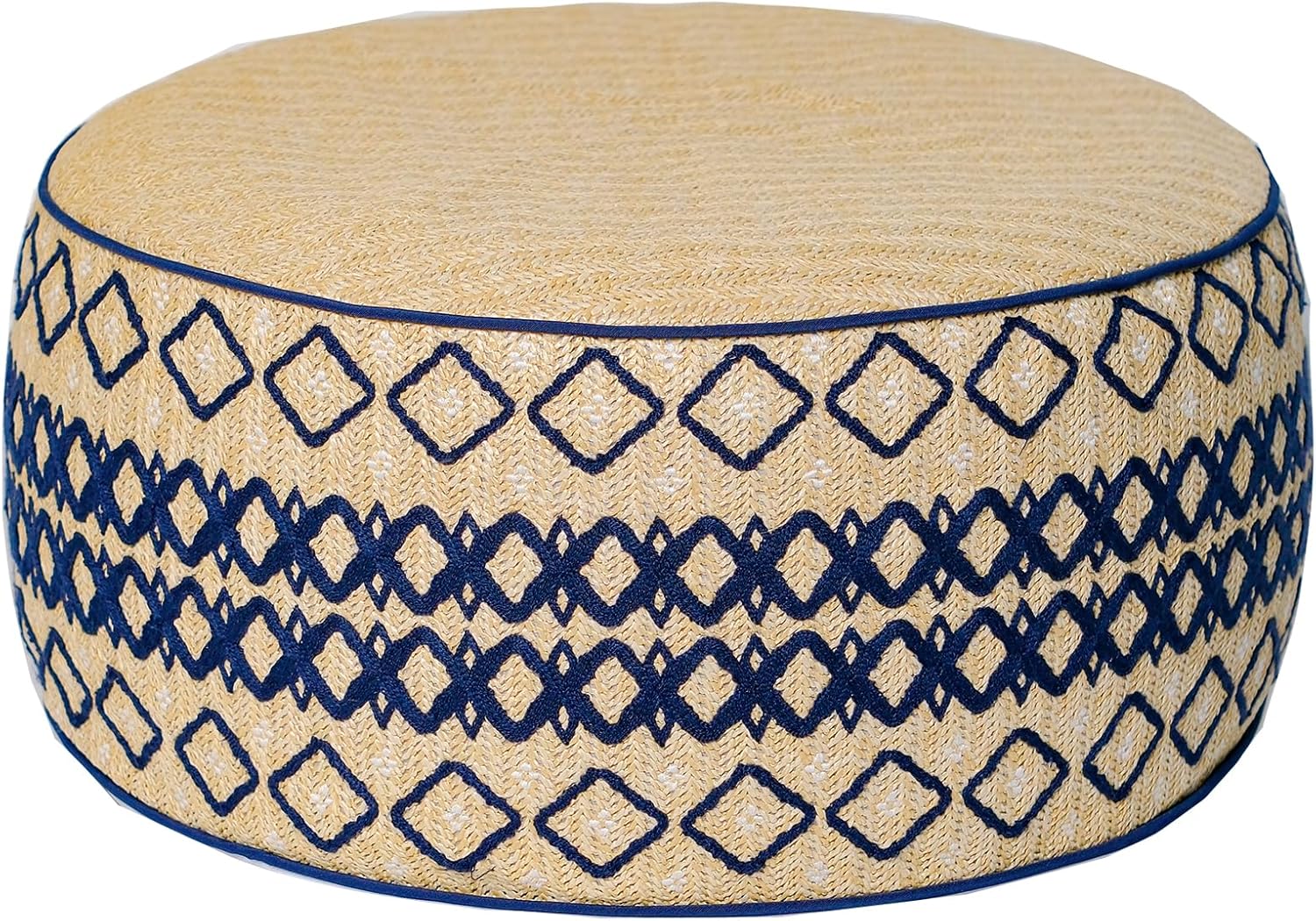 Outdoor Inflatable Ottoman with Air Pump, Embroidery Patio Footrest Stool D21”x H9”, Round Pouf Ottoman with Portable Handle Suitable for Garden, Camping, Bedroom, Living Room