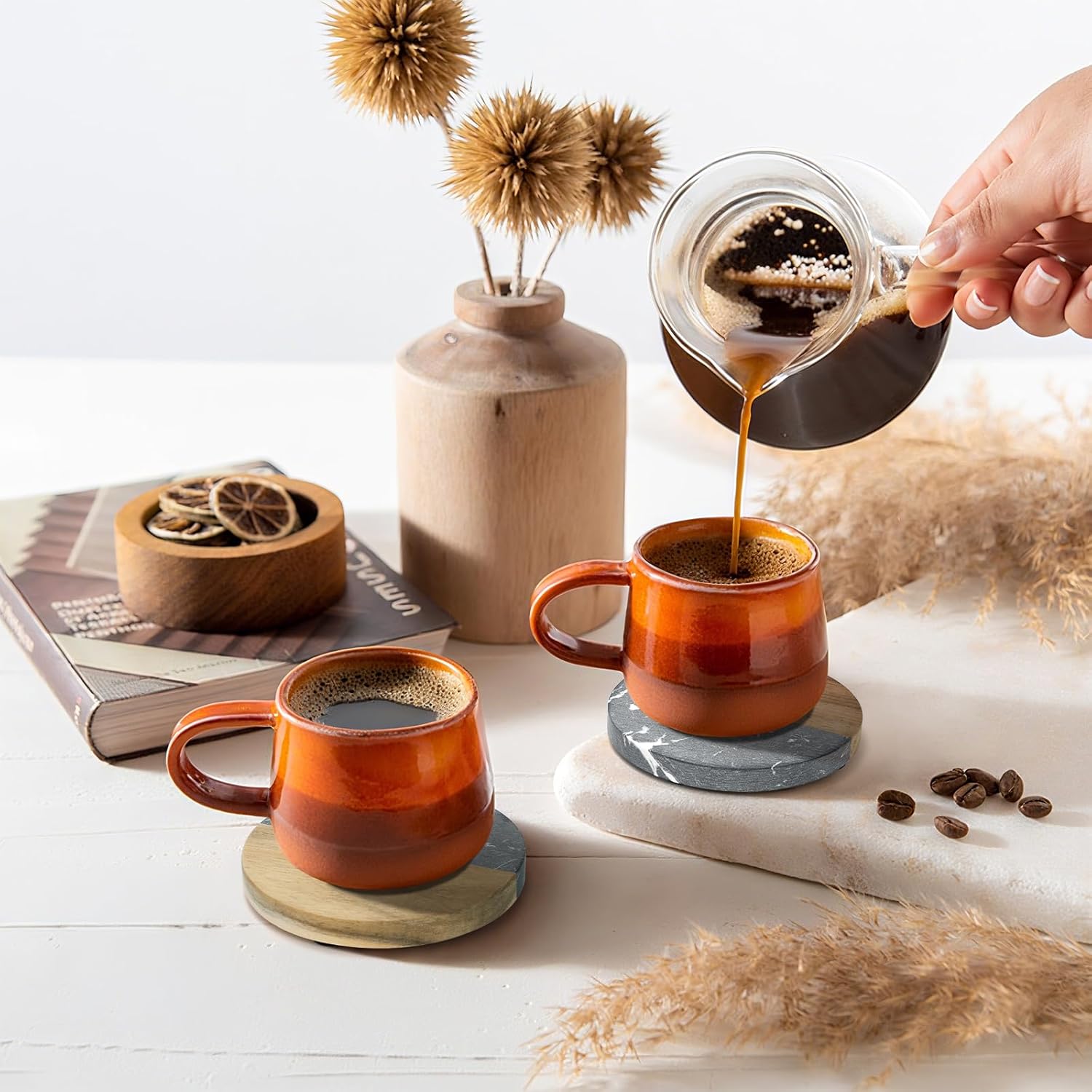 - Useful for Many Occasions: The handcrafted marble coasters can be used not only at home, but cafe, restaurant, and bar! This wood and stone coaster set is also a great gift choice for your friend and family!