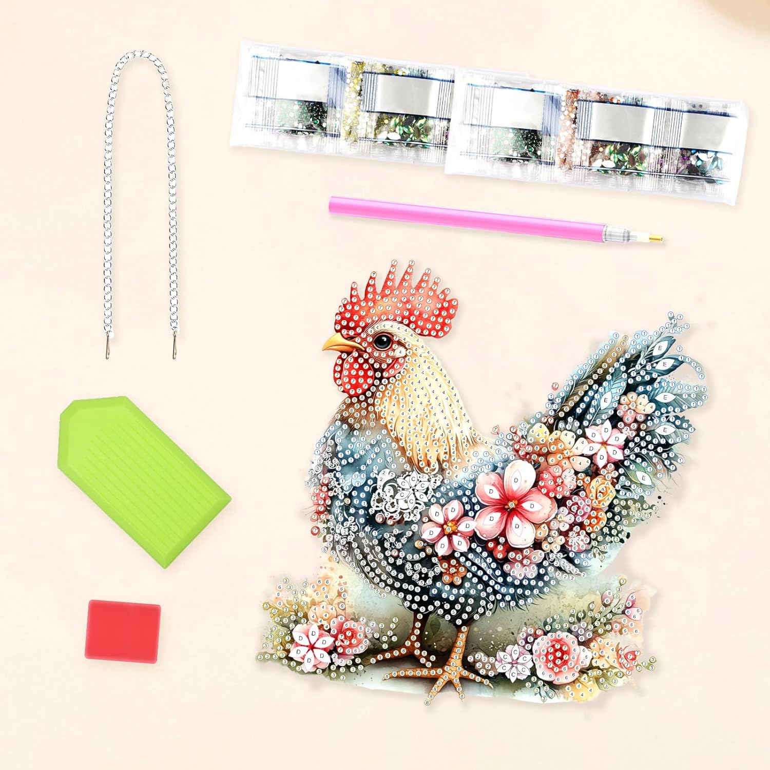 - Complete DIY Diamond Painting Kit for Adults: Includes everything you need: acrylic pendant, metal hanging chain, applicator pen, wax pad, diamond tray, and a full set of diamond painting drills. Enjoy a relaxing and creative craft activity