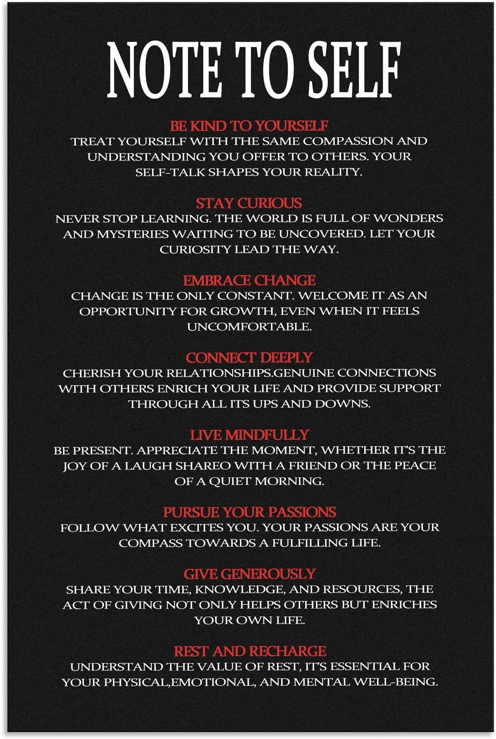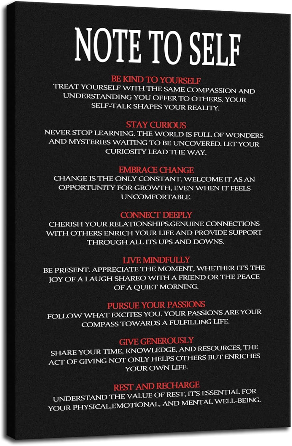WYJDFART Inspirational Canvas Poster NOTE TO SELF Motivational Wall Art Decor for Office Living room Bedroom Home Printed Modern Artwork Framed Ready to Hang [12" W X 18" H]