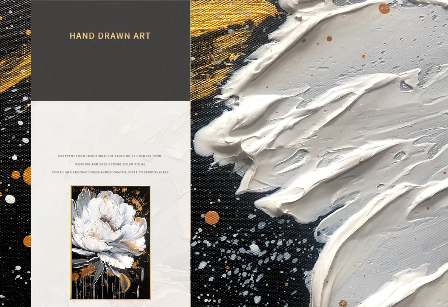 Framed White and Black Flower Wall Art for Study,Hand Painted Floral Oil Painting for Bedroom,Modern Textured 3D Artwork Office Kitchen Decor 28x40inch