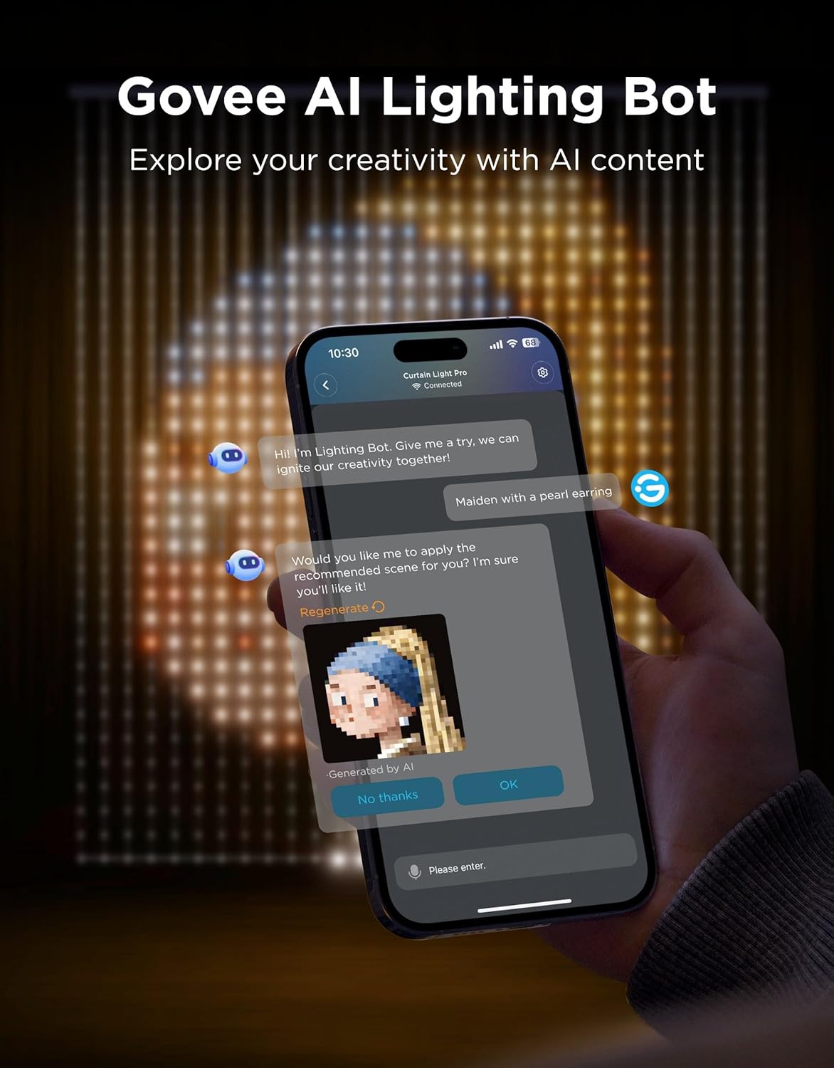 - Smart Ecosystem Experience: Pair these smart DIY curtain lights with Matter, Alexa, and Google Assistant for seamless voice control. Use Govee Home App to individually control the color of each Govee light for indoor and outdoor decorations