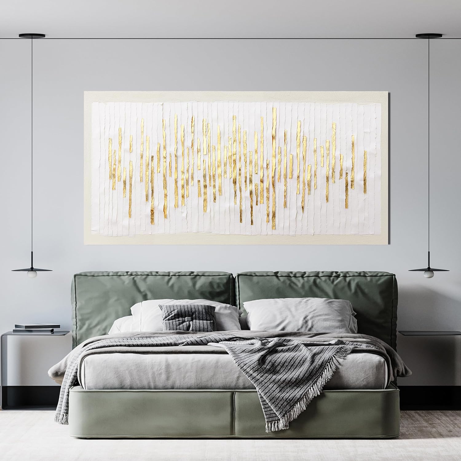 Canvas Wall Art Decor Modern Large Wall Decor For Living Room Gold Abstract Wall Art White Textured Wall Art Artwork for Walls Canvas Prints Art Work For Home Kitchen Office Wall Decor 24" X 48"