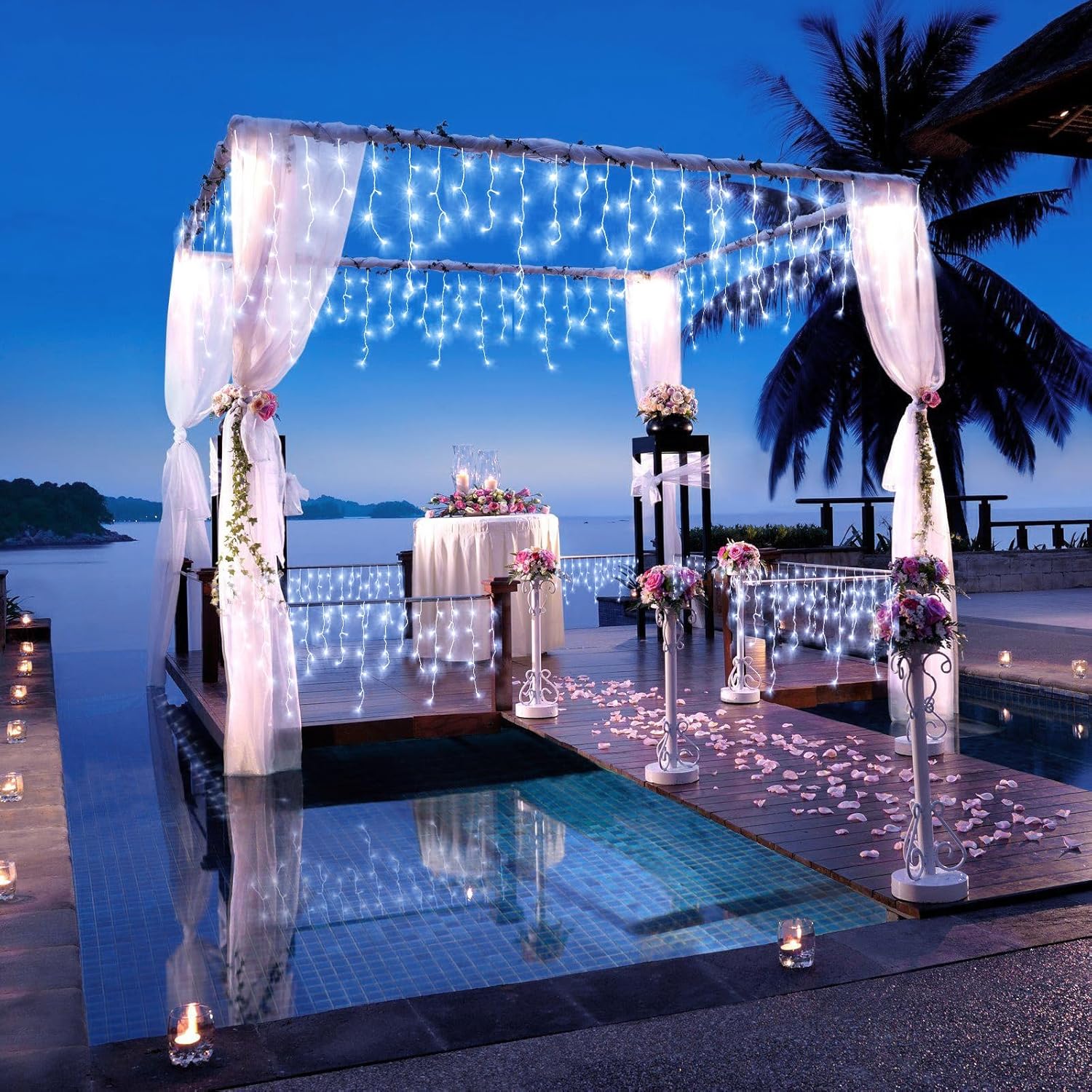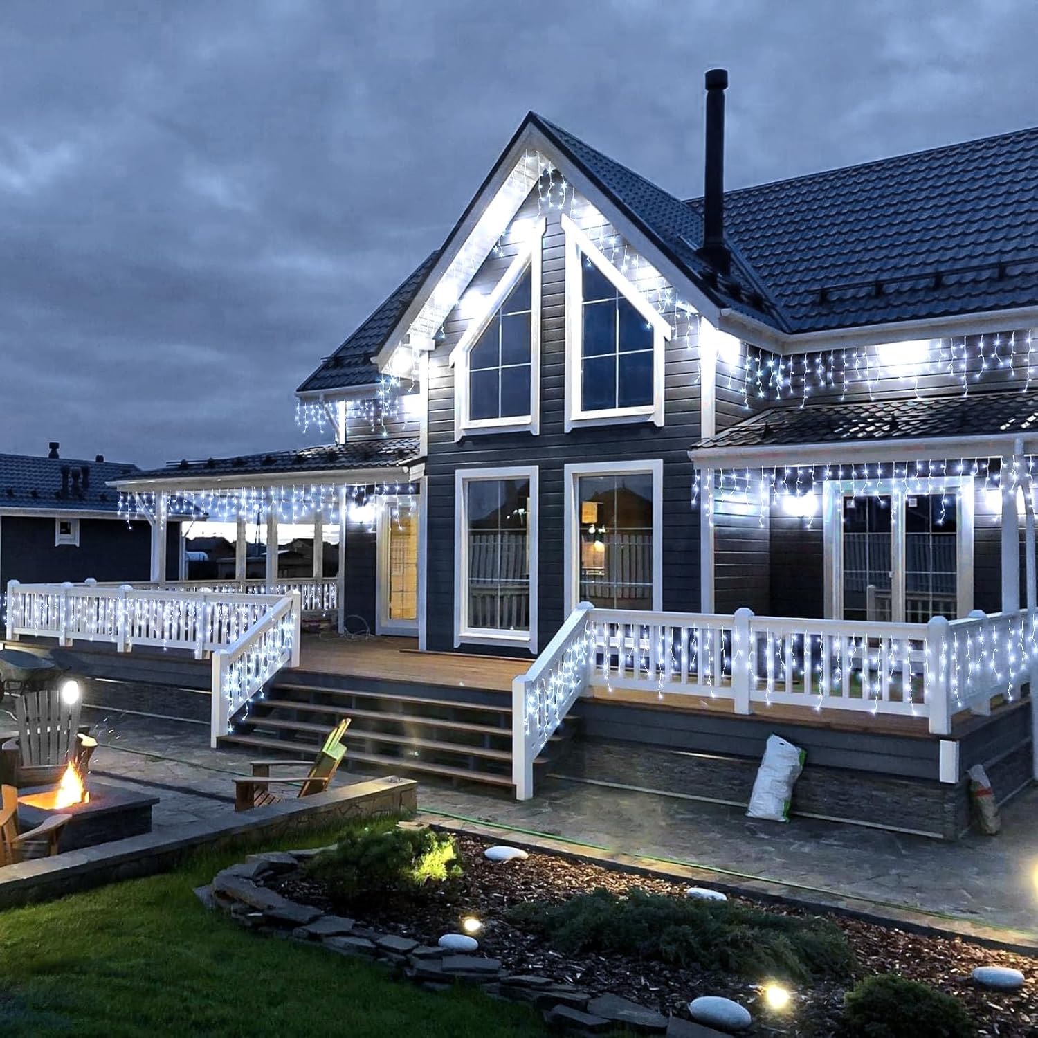 - 【Ideal Outdoor Decorations】The icicle lights outdoor are IP44 Waterproof, which can withstand all kinds of weather, ideal for indoor and outdoor decorations. However, please keep the plug away from water. These outdoor Christmas lights are perfect for Christmas, Halloween, Thanksgiving, wedding, party, Valentine's Day and any festive occasion.