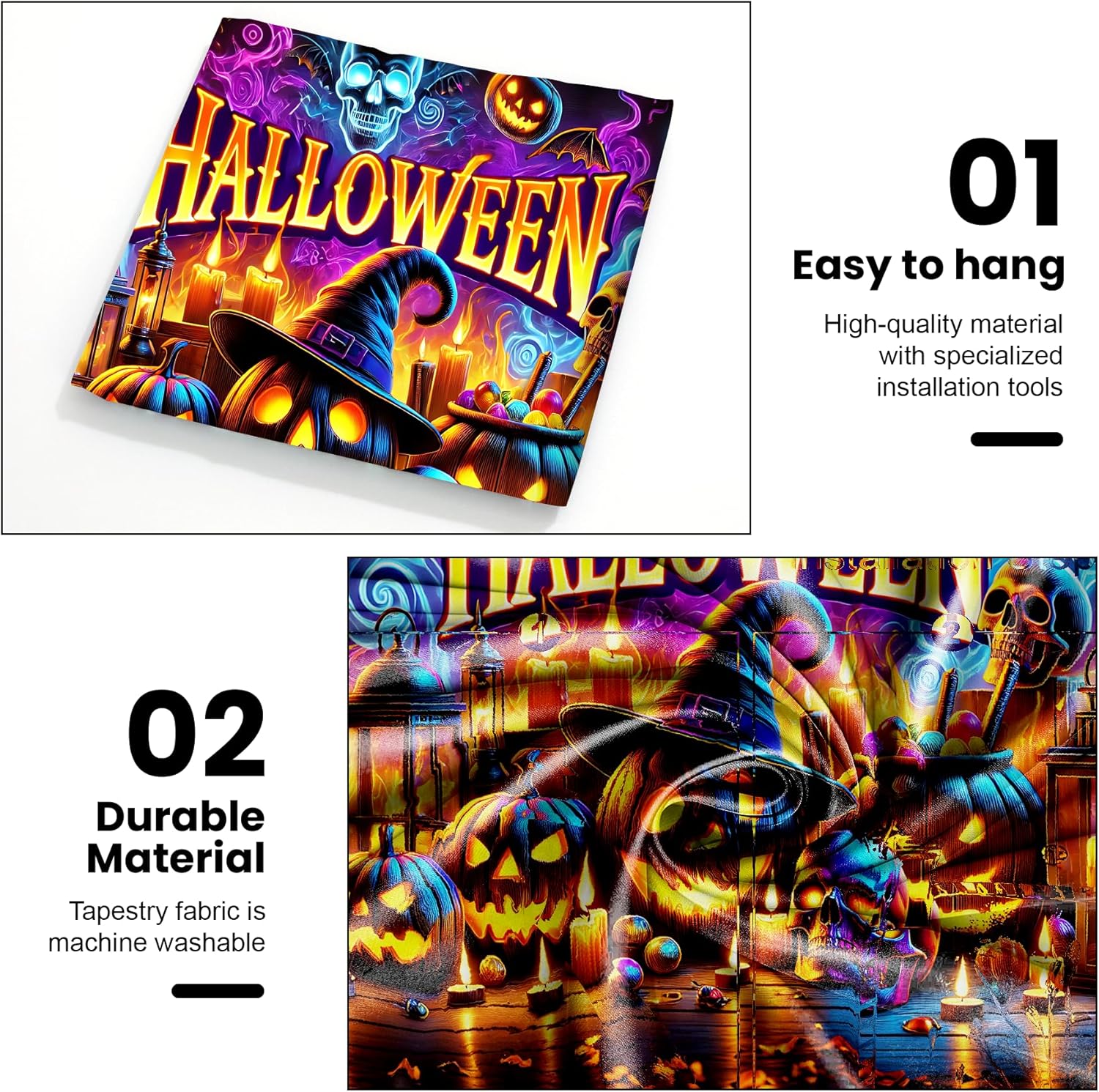 - 【Durable & Versatile】Made from premium polyester, this lightweight yet durable fabric works as wall art, a curtain, tablecloth, or photo backdrop for unforgettable Halloween moments.