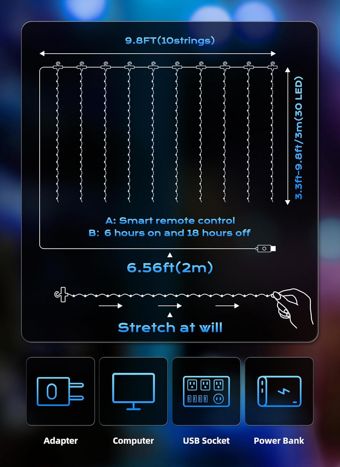 - [Safety & Decoration] Operated with 5V low voltage, our fairy curtain lights glow with low heating, and it is safe to touch; It can be safely hung on the curtains or on the wall. It is a wonderful decor for dorm, college, bedroom, party, birthday, wedding, Christmas, New Year, indoor, outdoor, classroom