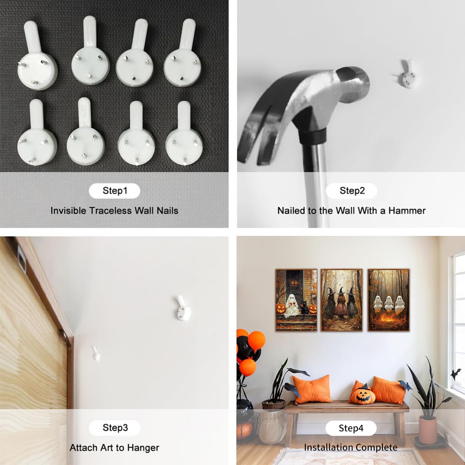 - 【Simple To Install】Each of these three horror ghost witch art prints pieces measures 16x24inches. It comes with all the necessary accessories so it's simple and easy to install. Simply choose where you want to decorate, make sure it's level and aligned the way you want it, and then nail it down with non-marking nails.