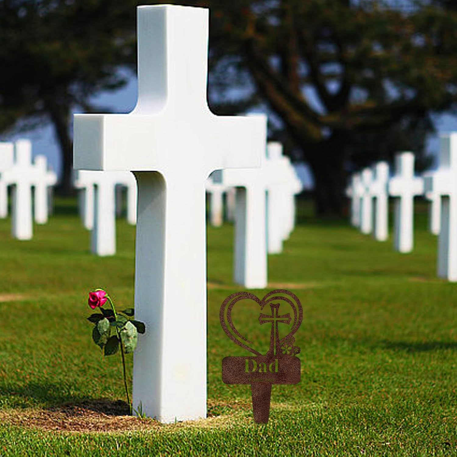 - Dad Graveside Decorations for Cemetery Size: Memorial Grave Stake for cemetery size is 12.5*7.2*0.04 inches, the pointy design on the bottom allows you to easily insert it into the ground and stand firmly. Please make sure the size is right before buying