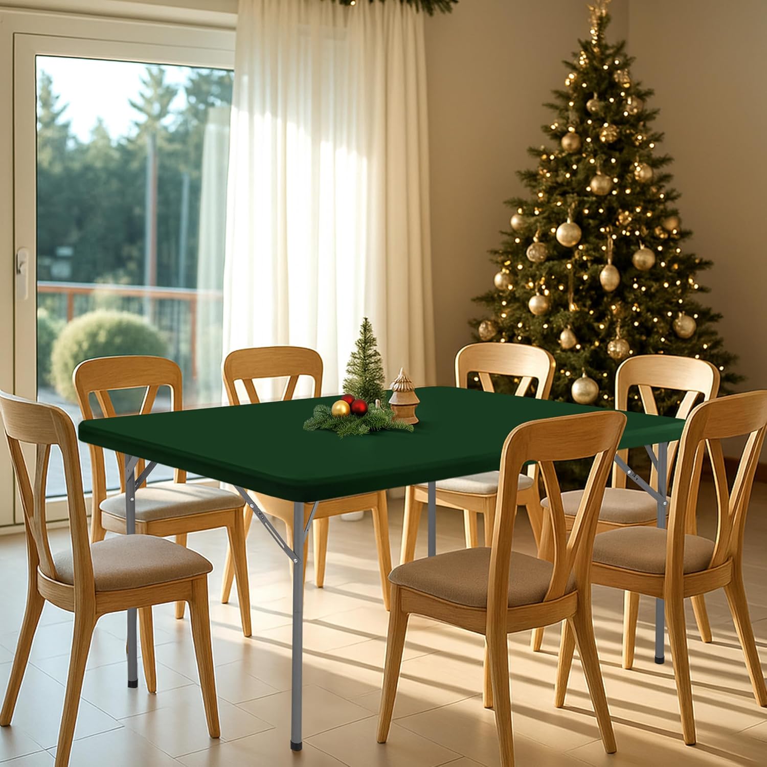 Fitted Tablecloth for 6 Foot Rectangle Tables-6 Pack Hunter Green Elastic Outdoor Picnic Table Cover-Spandex Stretch Folding Table Cloths 6 ft for Camping Dining Patio Kitchen Banquet Party