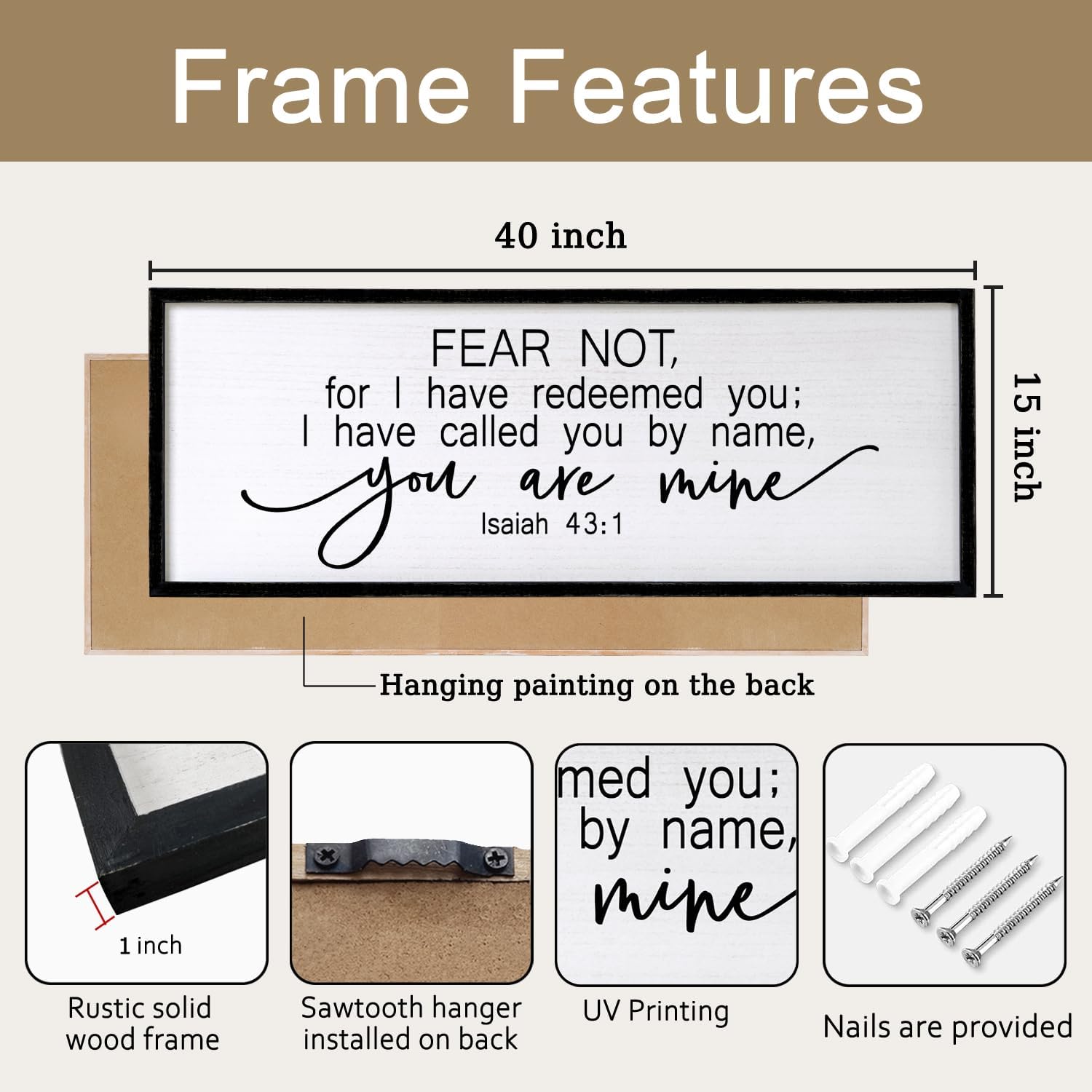Fear Not for I Have Redeemed You Sign Framed Wall Art, 40''×15'' Rustic Religious Christian Isaiah 43:1 Bible Verse Sign, Horizontal Holy Inspirational Catholic Scripture Decor