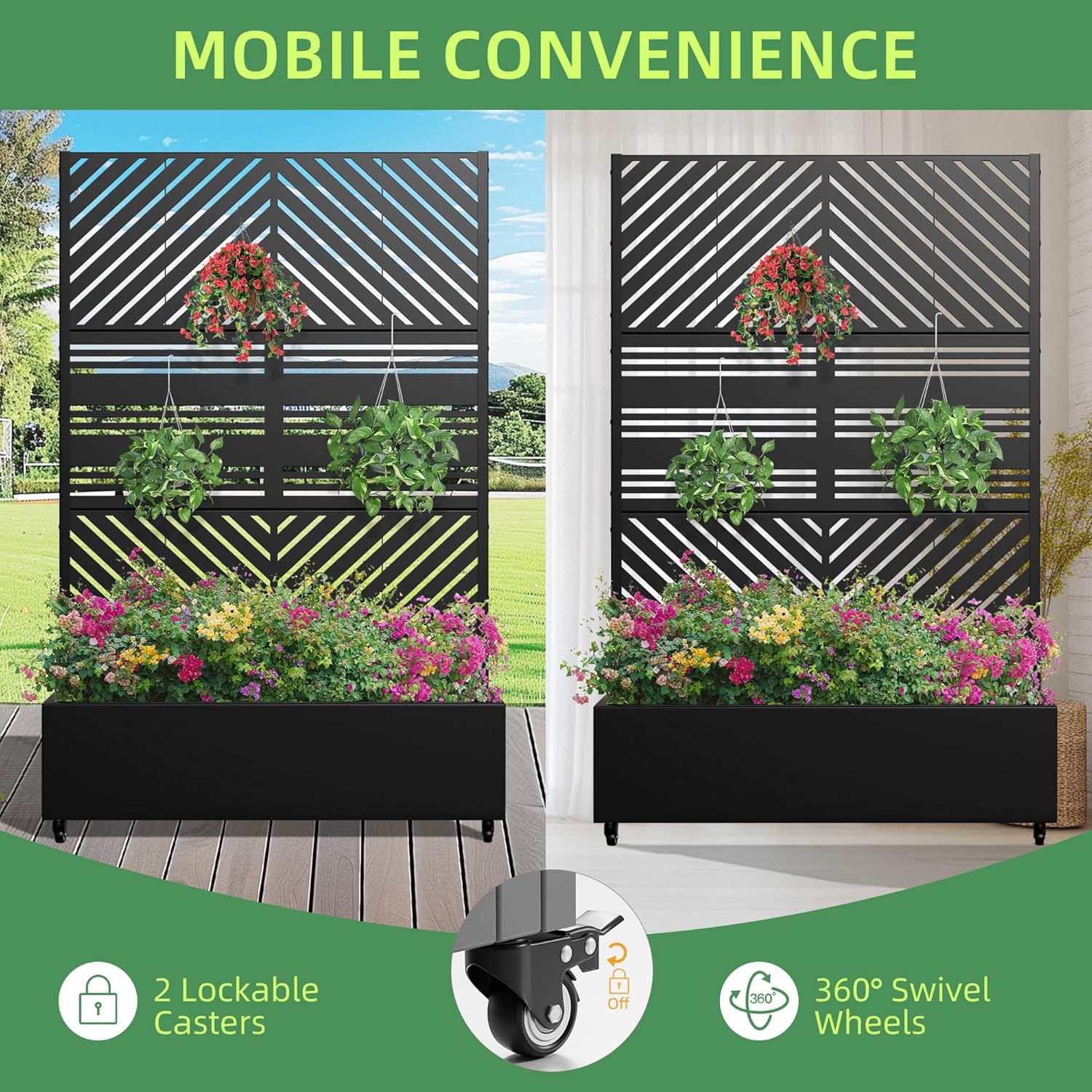 Casaphoria Metal Raised Garden Bed with Trellis and Wheels, 72"x47"x16" Planter Box for Climbing Plants, Vegetables & Vines, Features Drainage Holes and Privacy Screen, Black(Parallel&Harold)