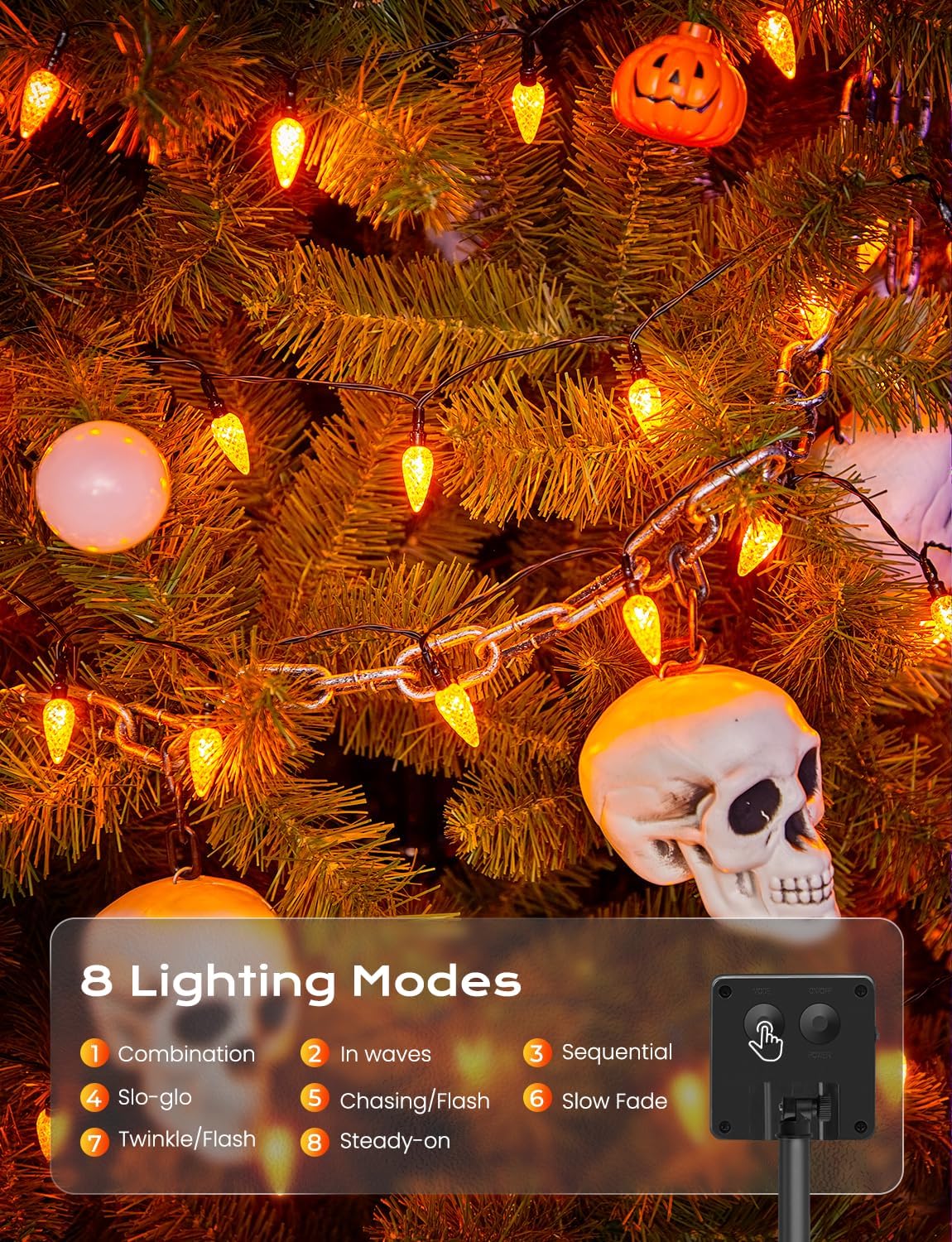 - [Diamond Strawberry Shaped Led String Lights] Diamond C6 strawberry shaped, durable and exquisite, built-in colored lights, very nice Halloween color, perfect for outdoor Halloween party, Halloween tree decorations