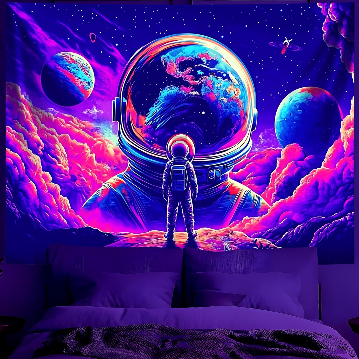 BVBOX Astronaut Space Blacklight Tapestry 79"x59", UV Reactive Astronaut Universe Planet Glow in Dark Tapestries, Black Light Neon Upright Poster Wall Hanging Backdrop Decor for Bedroom Living Room