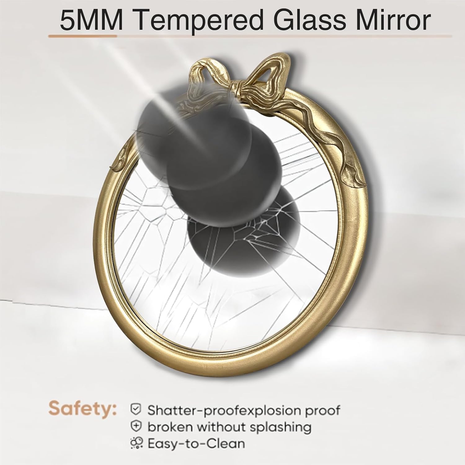 - 【Safe Tempered HD Glass】Our gold wall decorative mirrors combine 5mm tempered glass with shatterproof protection. These circle mirrors for wall decor feature 5-layer floating technology, delivering clear reflections with 90 CRI and quick fog dissipation. As a practical mirror for girls room, it serves both as a functional piece and stylish wall accent.
