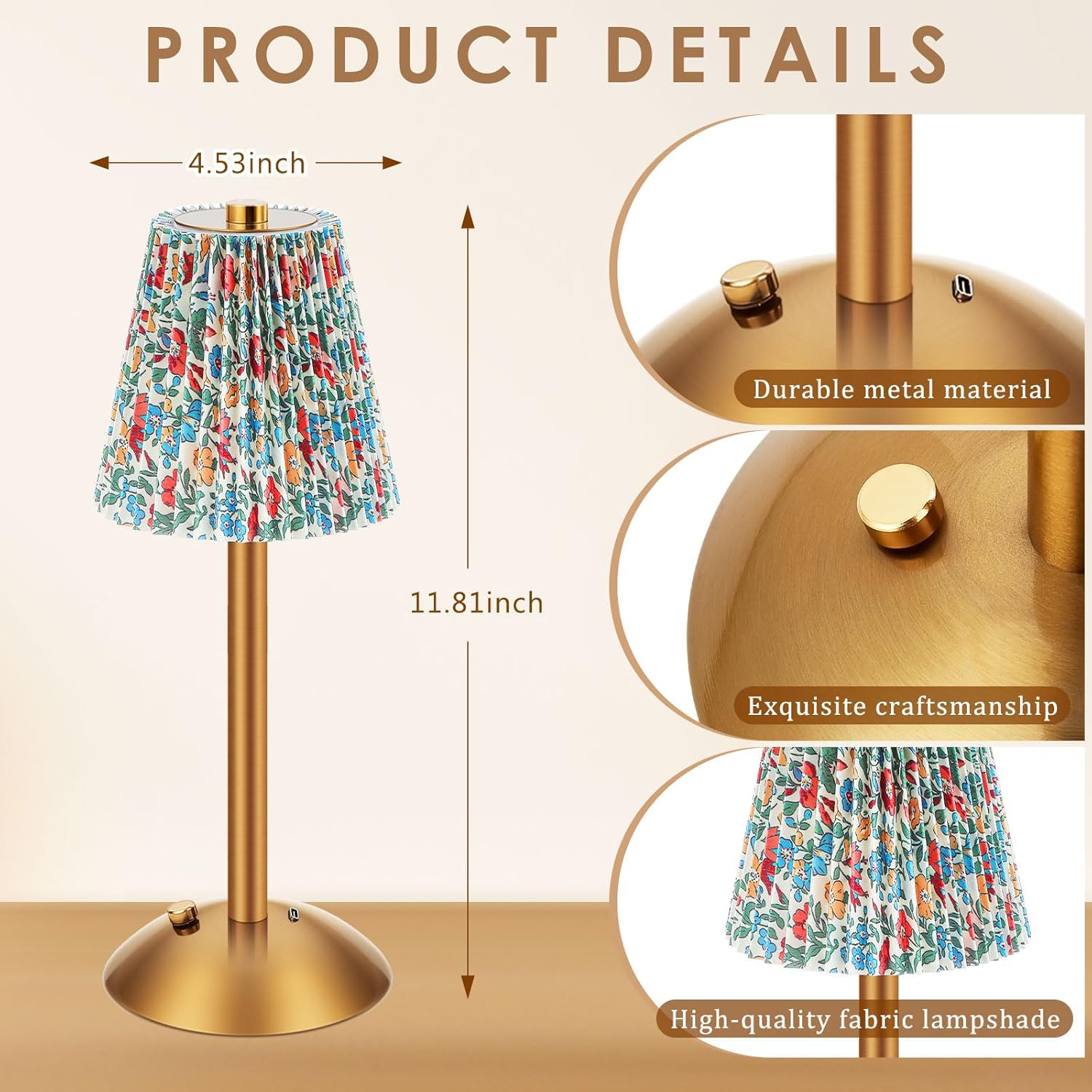 Liliful 2 Pcs LED Portable Cordless Table Lamp Touch Battery Operated Rechargeable Desk Lamp 3 Color Dimmable for Bedroom Living Room Dining (Floral Style,Gold)