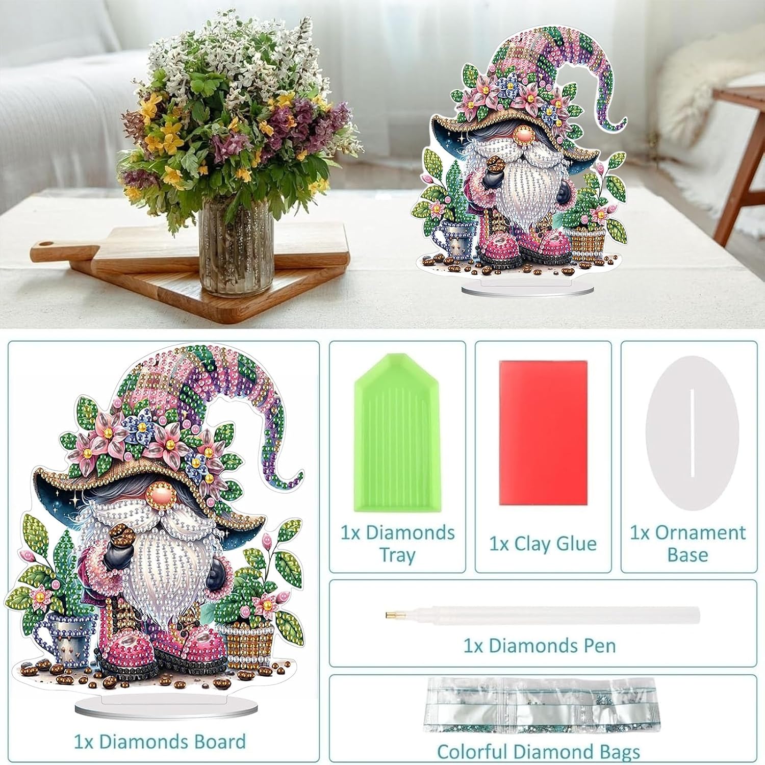 - 【DIY Diamond Desktop Ornament】:Package of the ornament includes:1 X desktop ornament, 1 X diamond dainting tool kit (Colorful Diamond Bag, Clay Glue, Pen and Diamond Tray).