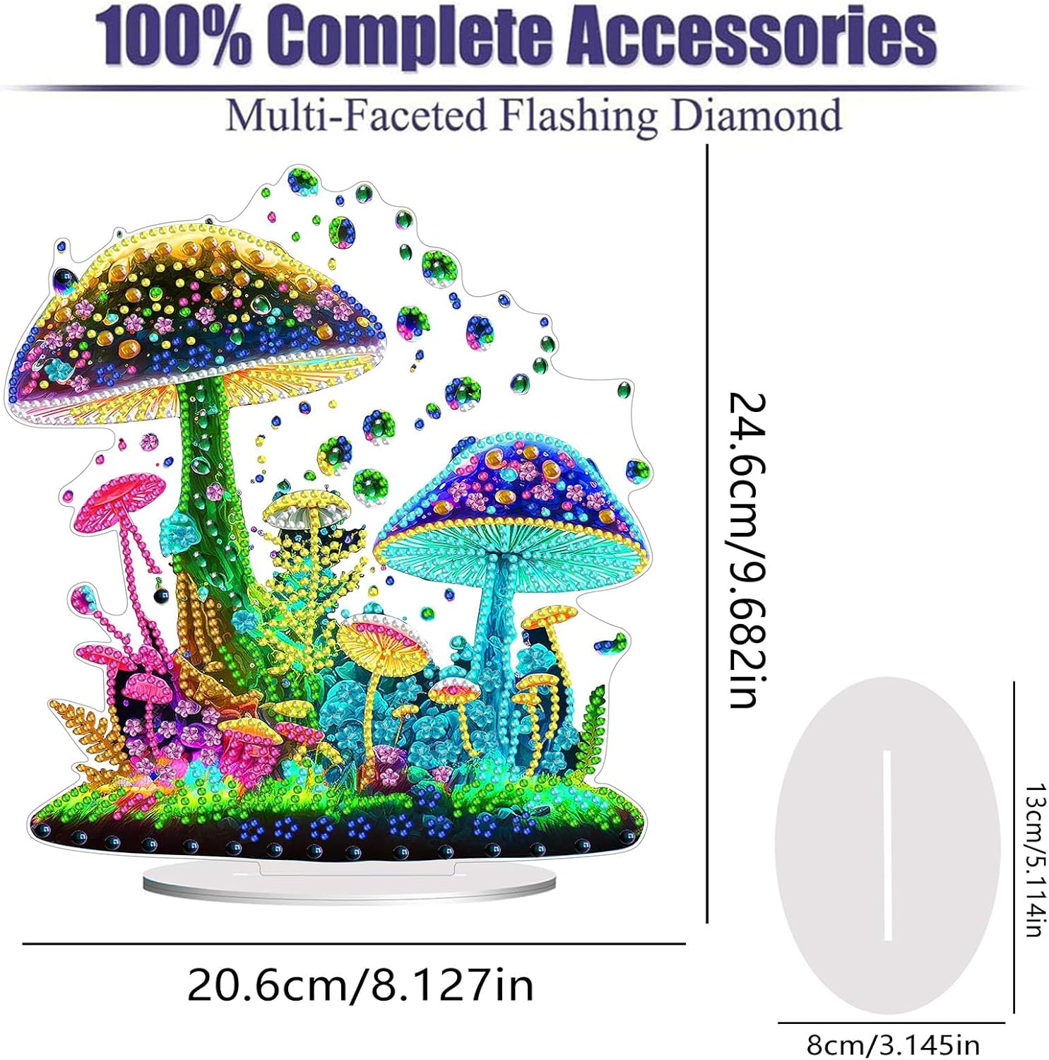 Diamond Painting Kits for Adults Beginners, 5D Full Drill Mushroom Crystal Art Desktop Ornament, DIY Single Sided Home Office Desk Decor, Creative Craft Gift Set with Tools