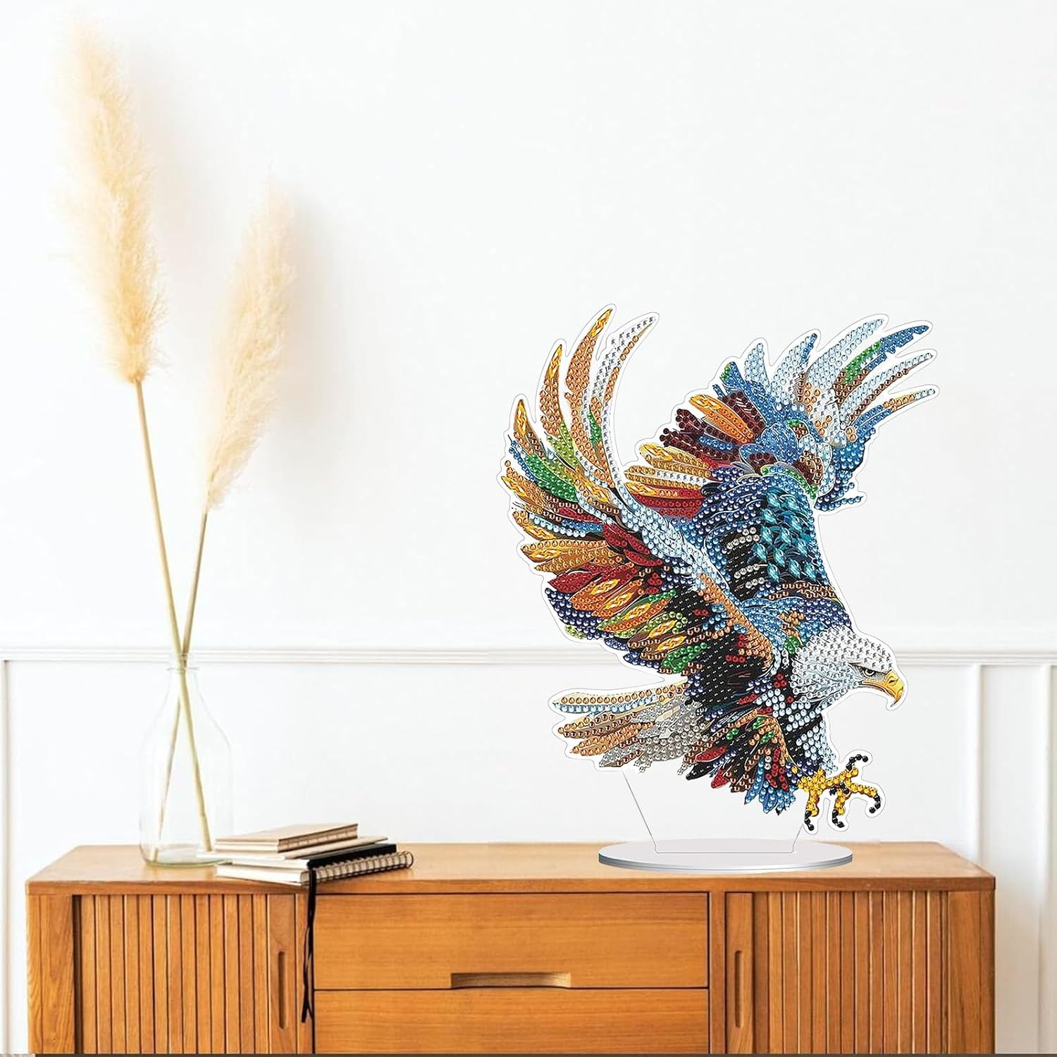 Diamond Painting Kits for Adults Beginners, 5D Full Drill Eagle Crystal Art Desktop Ornament, DIY Single Sided Home Office Desk Decor, Creative Craft Gift Set with Tools