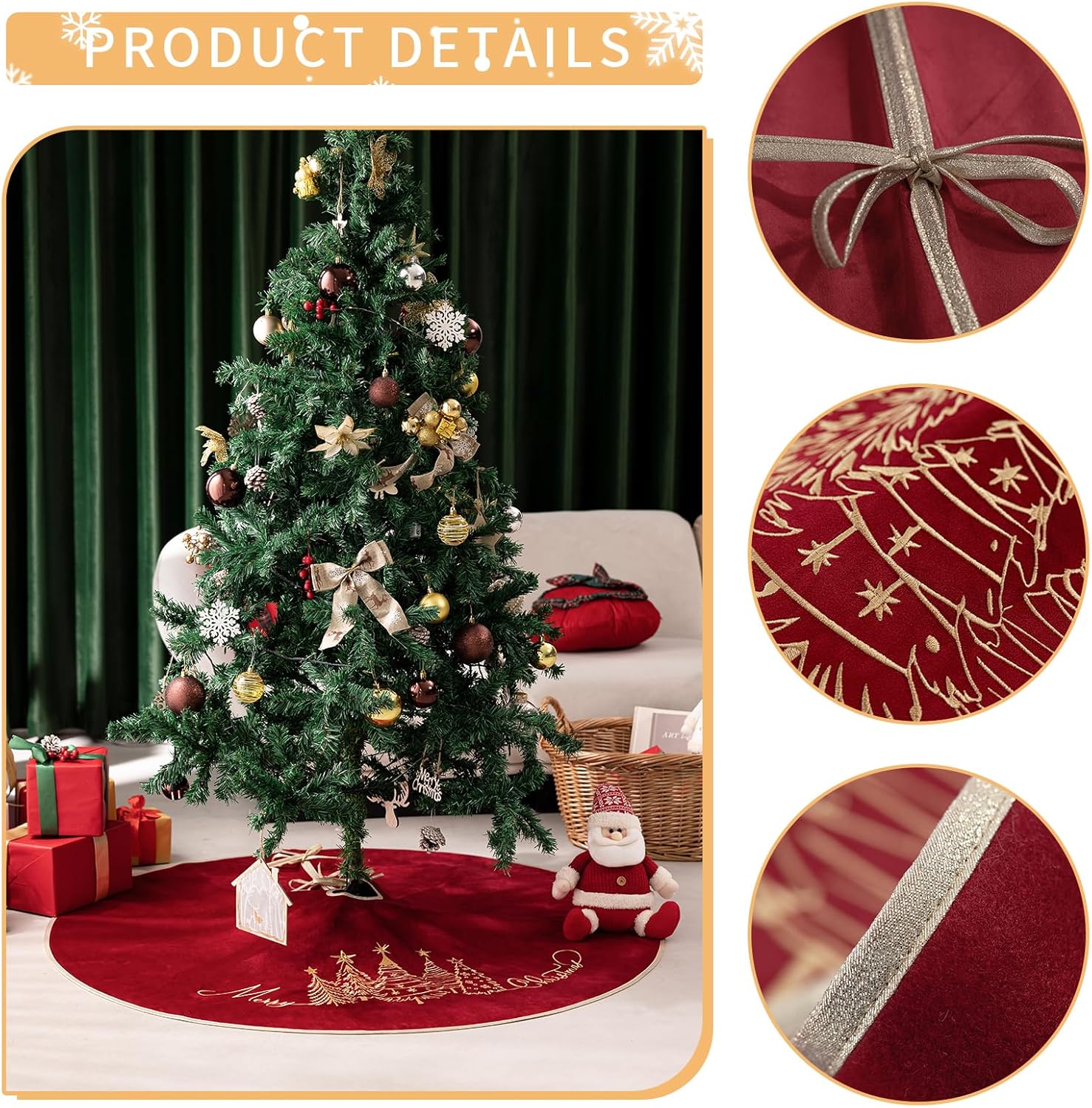 - [Large 50-Inch Diameter]: Perfect size for 5' to 7.5' Christmas trees; offers full coverage for tree stands, cords, and plenty of space for gifts and décor.