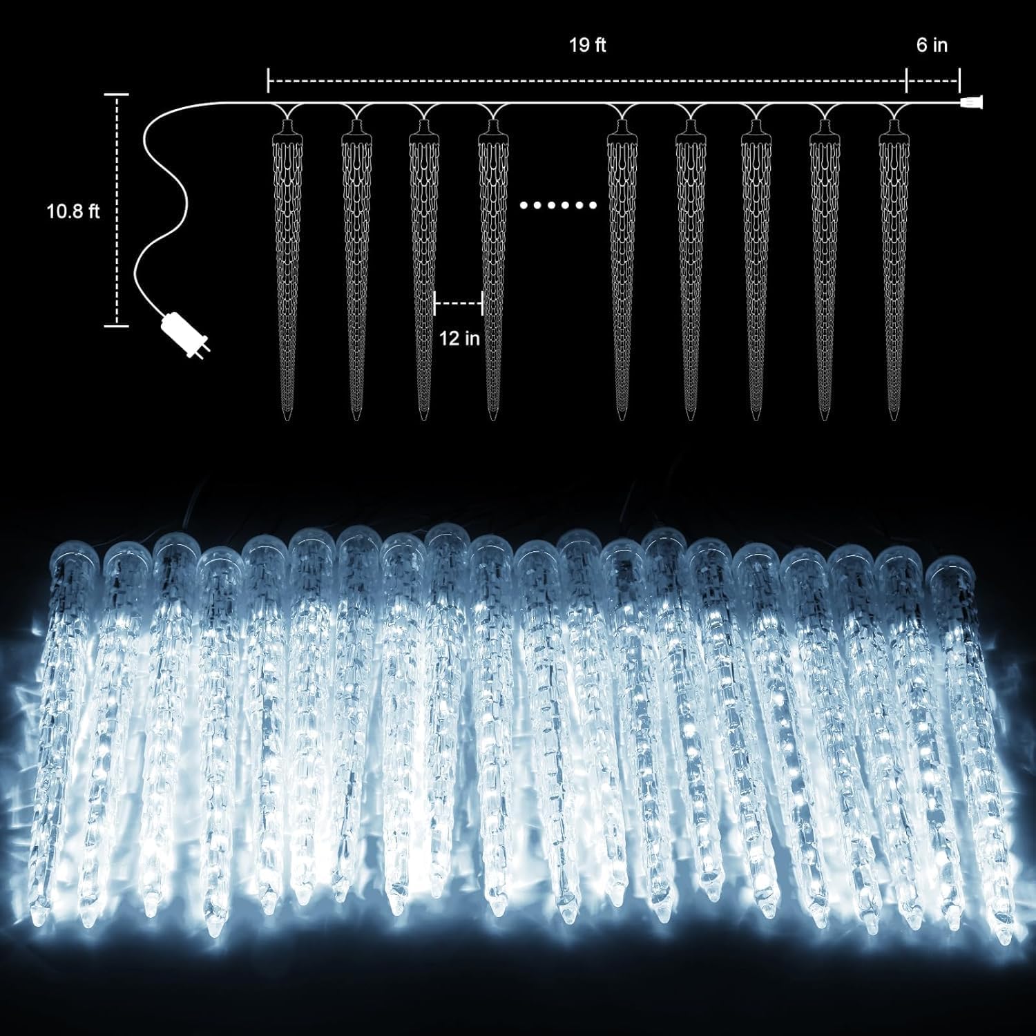Brightown Christmas Meteor Shower Icicle Lights Outdoor, 2 Pack Total 40ft with 40 Large Tube 960 LED Dropping Effect, Waterproof Decorations for House Eave Roofline, Cool White