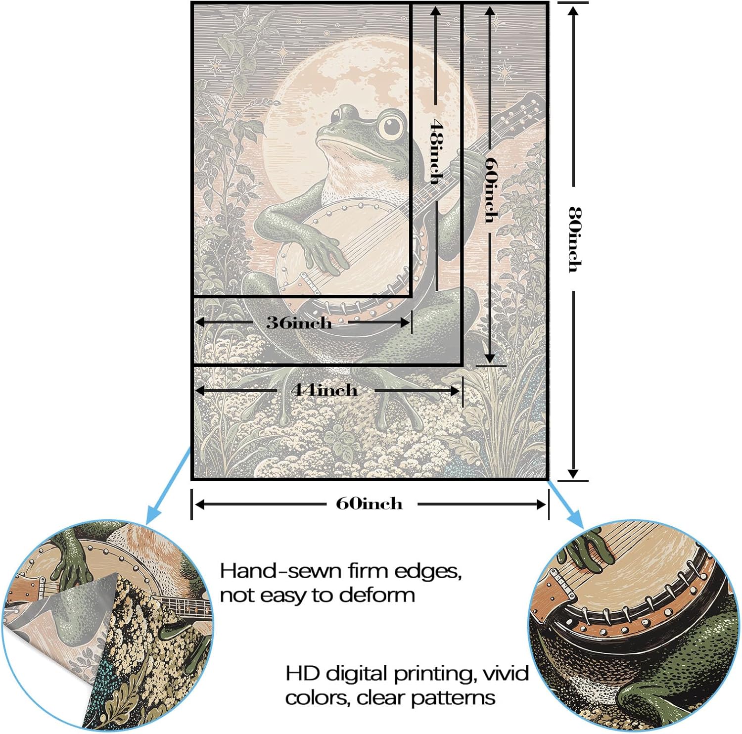 Lunerfex Moonlit Banjo Frog Wall Tapestry, Whimsical Amphibian Musician Tapestries for Room Decor, Folk Art Tapestry 60L x 80W