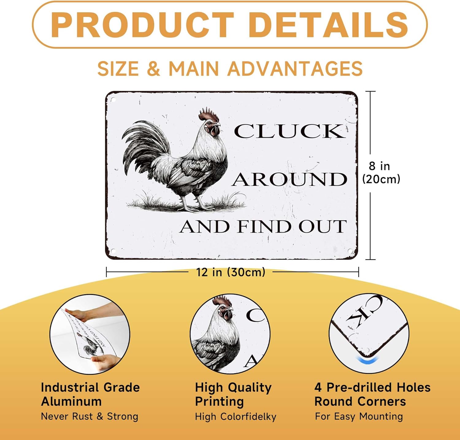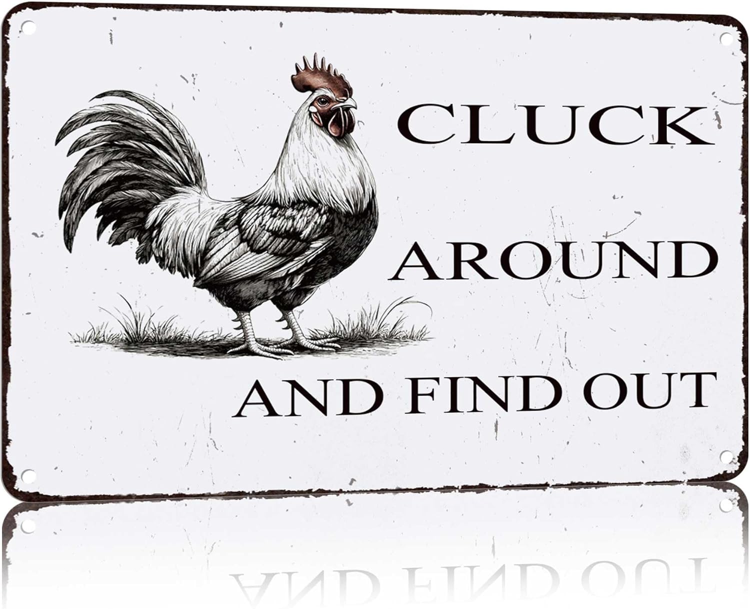 Funny Chicken Coop Sign "Cluck Around & Find Out" Vintage Metal Tin Sign 8x12 Inch - for Farmhouse Kitchen Decor,Chicken Coop Accessories,Barn,Rustic Home & Garden Wall Art with Hanging Holes