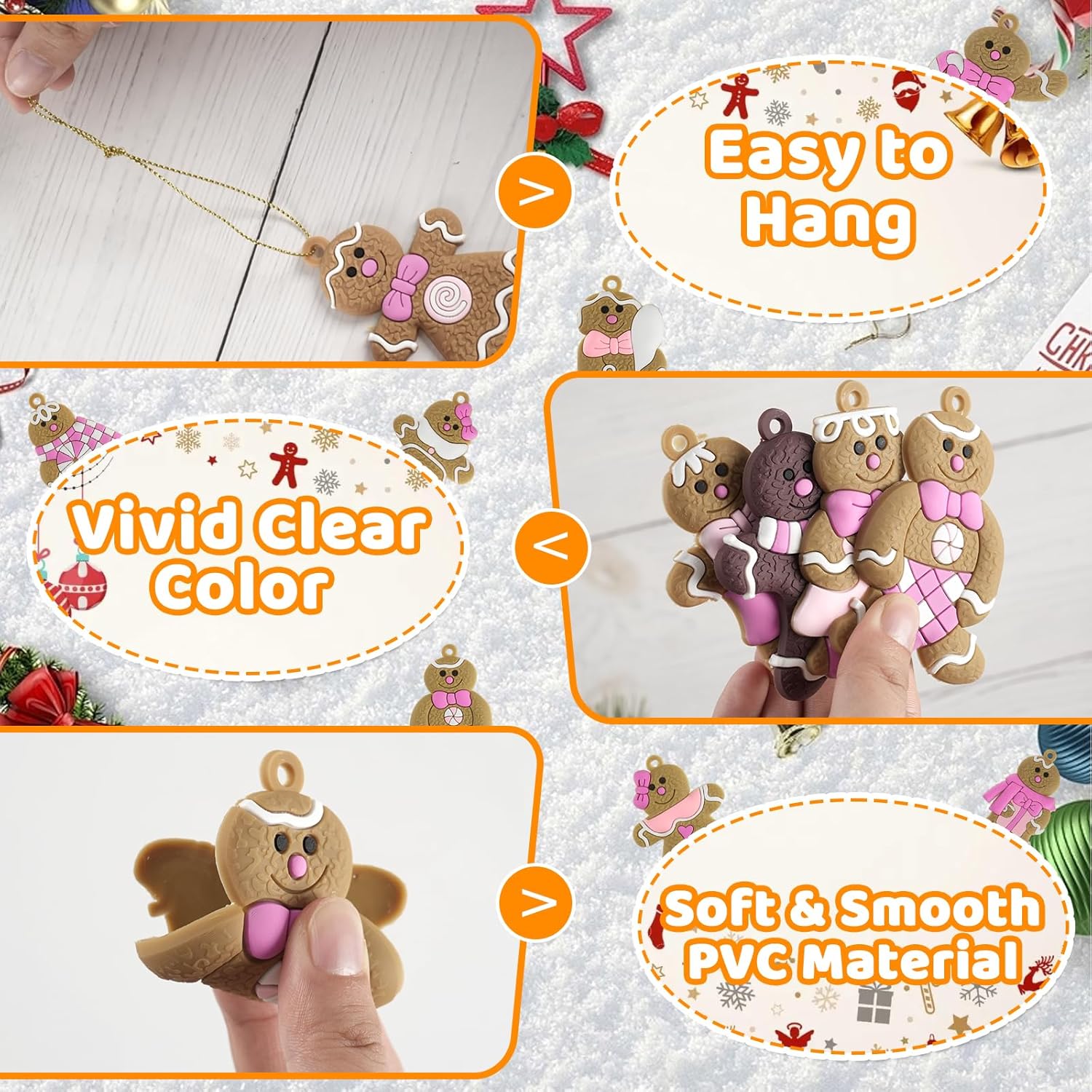 - DURABLE MATERIAL: These gingerbread ornaments are made of soft rubber material, durable and great quality, will last for years’ Christmas decorations