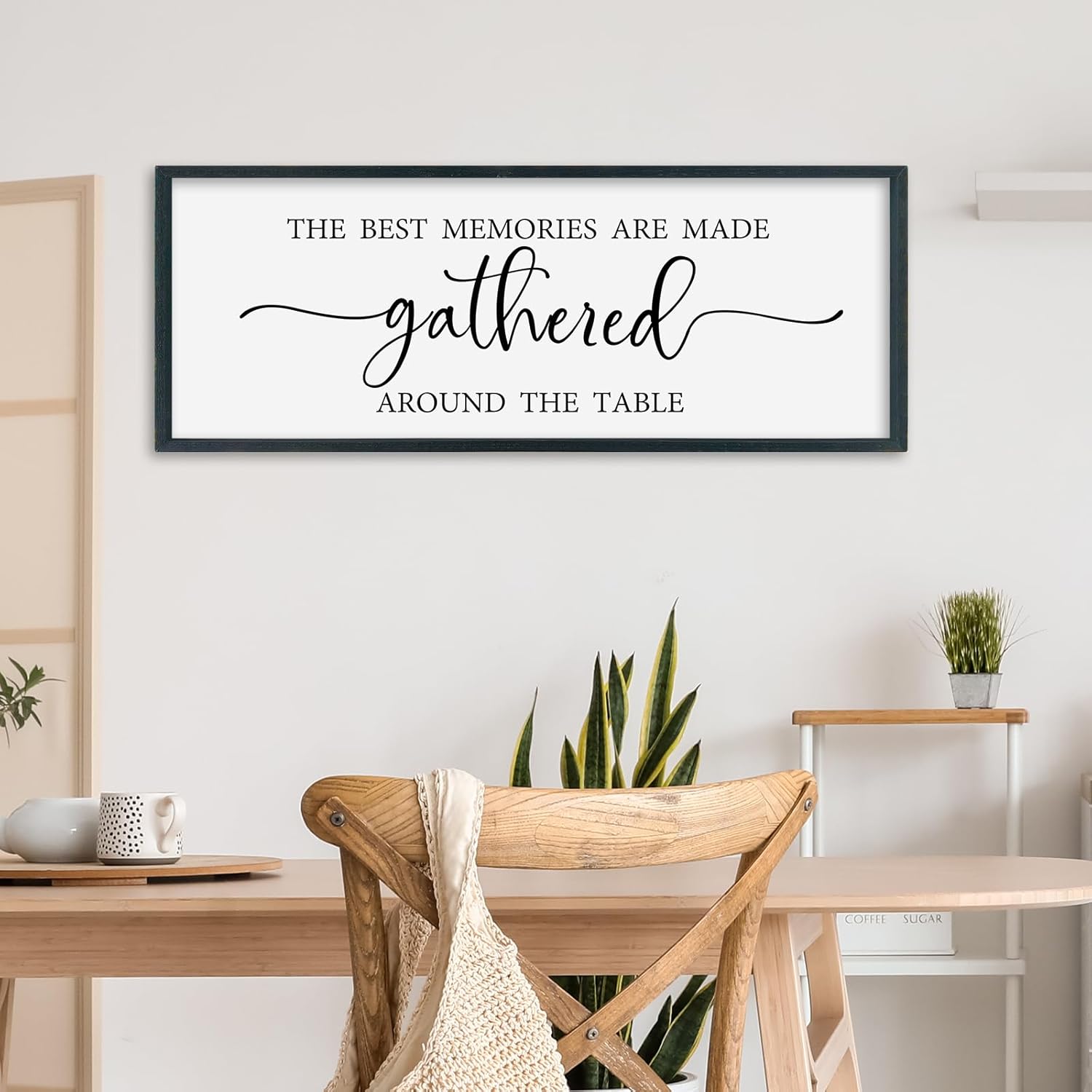 SRSZHIYUE The Best Memories Are Made Gathered Around The Table Sign Wall Decor Art 40"×15" for Kitchen Dining Room Large Wood Framed Wall Hanging (Black)