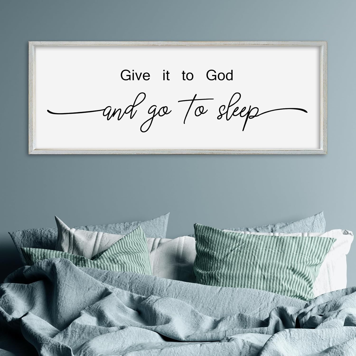SRSZHIYUE Give It To God And Go to Sleep Sign Wall Decor 32"×12" for Master Bedroom Above Bed Guest Room Over Art Decoration (White)